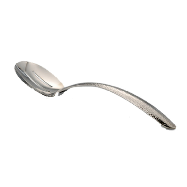 The Bon Chef 9458HF EZ Use Banquet Serving Spoon 13-1/2" Slotted is a distinguished utensil crafted to enhance serving efficiency at large gatherings and catering events. Measuring 13-1/2 inches in length, this spoon is optimized for ease of use in banquet settings, making it an essential tool for catering professionals and restaurateurs who demand precision and reliability. Manufactured from 18/8 stainless steel, this serving spoon promises exceptional durability and resistance to corrosion, ensuring it withstands the rigors of frequent use while maintaining its sleek appearance. The slotted design not only facilitates the draining of excess liquids when serving but also contributes to its lightweight nature, allowing for effortless handling. Finished with a unique hammer texture, this spoon exudes a distinctive aesthetic that enhances the visual appeal of any buffet or dining setup. The Bon Chef 9458HF serves as a versatile asset in various segments of the foodservice industry, particularly in upscale catering services and banquet halls where both functionality and elegance are paramount. Its thoughtful design caters to the demands of high-volume service, positioning it as a valuable addition to any professional kitchen toolkit.