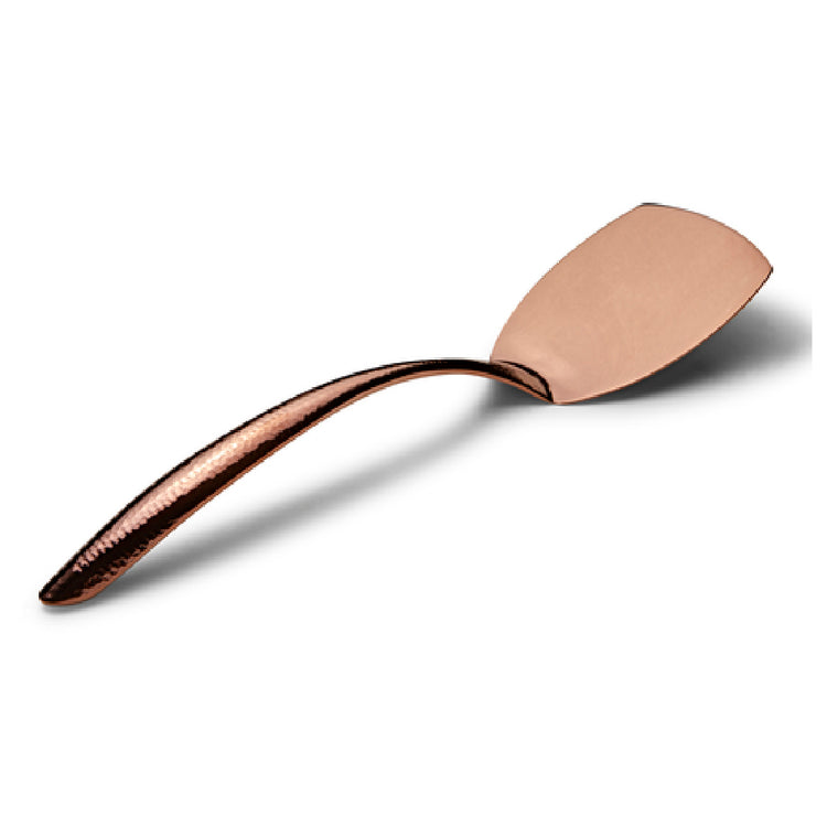 The Bon Chef 9459HFRG EZ Use Banquet Serving Turner 14-3/4" Solid is a meticulously crafted tool designed for the culinary professional seeking efficiency and style in banquet settings. With a substantial length of 14-3/4 inches, this serving turner is engineered for optimal handling and precision. It features a solid construction, ensuring durability and reliability during service. The hollow cool handle is an innovative addition, providing comfort and safety by reducing heat transfer, allowing for extended use without discomfort. Crafted from high-quality 18/8 stainless steel, this serving turner promises excellent resistance to rust and corrosion, ensuring longevity even in demanding environments. The PVD-coated finish in a sophisticated rose gold hue offers a touch of elegance, making it not only a functional tool but also a stylish accessory that complements upscale dining settings. The hammered finish adds a unique texture and visual appeal, distinguishing it from conventional serving tools. Ideal for banquet services, catering events, or upscale dining establishments, the Bon Chef EZ Use Banquet Serving Turner combines practicality with an aesthetic edge, catering to chefs and servers who value both performance and presentation in their culinary tools.