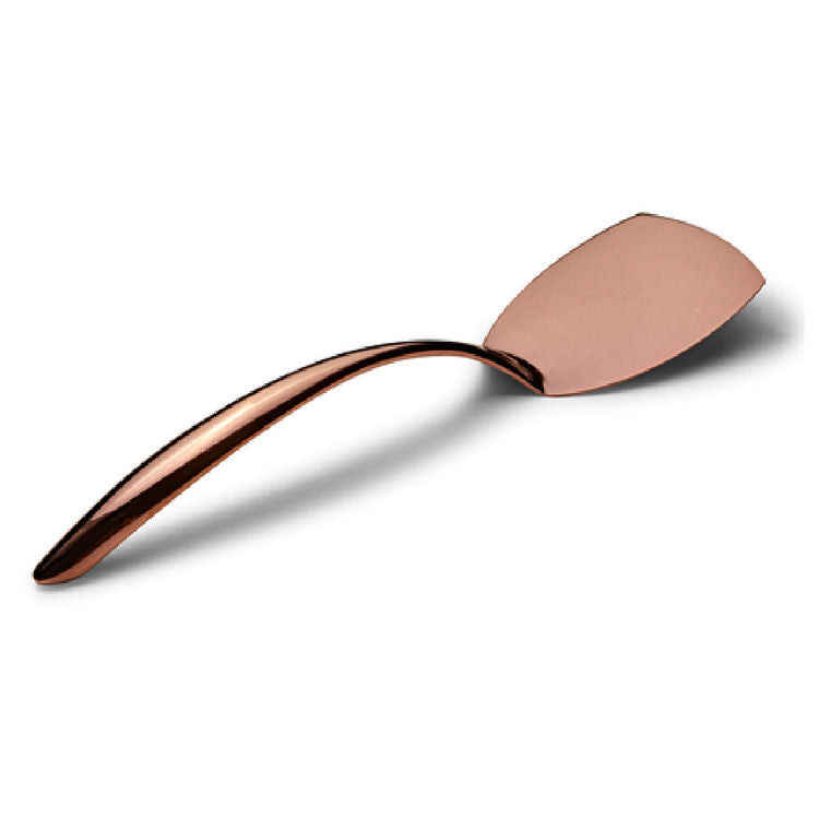 The Bon Chef 9459RG EZ Use Banquet Serving Turner 14-3/4" Solid is a premium kitchen tool designed for professionals seeking precision and elegance in food service. This serving turner measures 14-3/4 inches, providing an optimal length for handling a variety of dishes with ease. Crafted from 18/8 stainless steel, it ensures durability and resistance to corrosion, while the PVD coating extends its lifespan and enhances its resilience. The turner's stunning rose gold mirror finish adds a touch of sophistication, making it not only functional but visually appealing for upscale dining environments. The hollow cool handle design offers superior comfort and safety, minimizing heat transfer during use. Ideal for banquet settings, this serving turner meets the demands of both high-volume catering operations and intimate dining experiences, where presentation and performance are paramount. Its solid construction makes it a reliable choice for chefs and servers in hotels, restaurants, and catering services looking to elevate their service standards with high-quality, aesthetically pleasing tools.