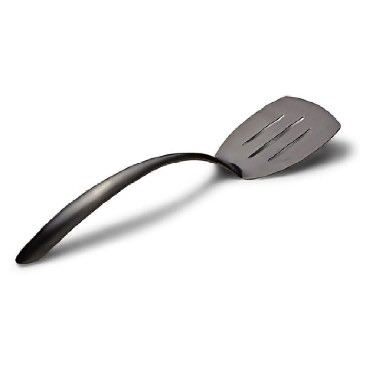 The Bon Chef 9460BM EZ Use Banquet Serving Turner - 14-3/4" Slotted is meticulously designed to meet the rigorous demands of the catering and banquet industry. With a length of 14-3/4 inches, its slotted design is ideal for precise and efficient serving tasks, allowing for easy draining of excess liquids. This turner features a hollow cool handle, which ensures a comfortable grip and minimizes heat transfer, making it safe for continuous use during large-scale events. Crafted from 18/8 stainless steel, it guarantees robust durability and resistance to corrosion, essential for maintaining hygiene and longevity in demanding environments. The PVD coating enhances its surface by providing an elegant black matte finish, which not only adds a touch of sophistication but also improves wear resistance. This combination of features makes the Bon Chef 9460BM an excellent choice for chefs and catering professionals who require reliable and stylish serving tools that can withstand the challenges of high-volume service. Its design and material selection emphasize both functionality and aesthetic appeal, catering to the needs of diverse market segments within the hospitality industry seeking to combine practicality with elegance in their serving utensils.