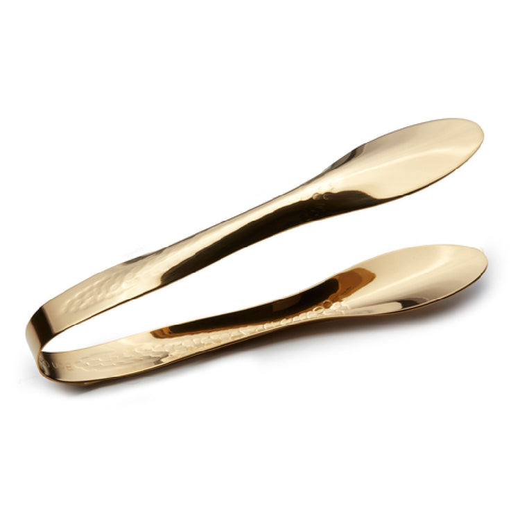 The Bon Chef 9461HFG EZ Use Banquet Serving Tongs are a versatile and elegant utensil, meticulously crafted for both functionality and style. Measuring 9-1/4 inches, these tongs are designed with a hollow cool handle, ensuring a comfortable grip and ease of use during extended service periods. Constructed from high-quality 18/8 stainless steel, they promise durability and resistance to corrosion, making them a reliable choice for catering services, banquet halls, and fine dining establishments. The PVD coating enhances the tongs with a luxurious gold finish, adding a sophisticated touch to any serving setting. The hammered finish not only provides a unique aesthetic appeal but also adds texture that can enhance grip. These features make the Bon Chef 9461HFG tongs an ideal product for different market segments within the hospitality industry, from upscale restaurants looking for stylish tableware to caterers seeking reliable and attractive serving tools. Their combination of functionality, durability, and elegant design underscores their value proposition, making them a standout choice for those prioritizing both utility and appearance in their service utensils.