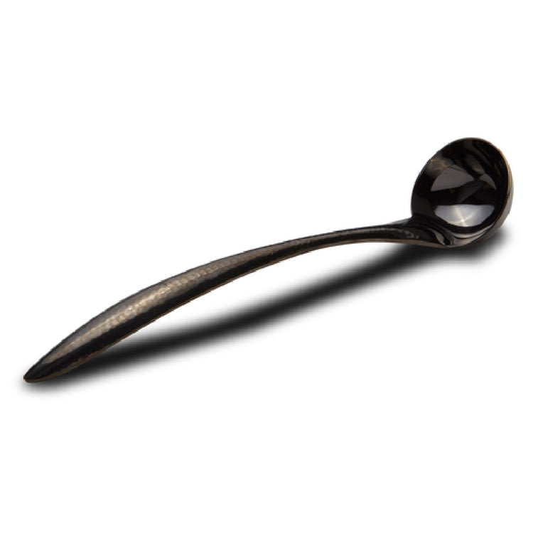 The Bon Chef 9462HFB EZ Use Banquet Serving Sauce Ladle is designed with precision and elegance, making it a versatile tool for catering professionals and banquet service setups. This ladle has a 1 oz. capacity and measures 10 inches in length, providing the perfect size for portioning and serving sauces with ease. It features a hollow cool handle, which enhances user comfort by reducing heat transfer, allowing for prolonged use without discomfort. Constructed from high-quality 18/8 stainless steel, the ladle ensures durability and resistance to corrosion, suitable for frequent use in busy food service environments. The PVD-coated black finish adds a sophisticated touch, while the hammered finish provides an aesthetic appeal that complements modern tableware. This combination of technical specifications and design makes the Bon Chef 9462HFB ladle a practical and stylish choice for catering events, upscale dining establishments, and professional kitchens seeking reliable serving utensils that enhance presentation and functionality. Its unique blend of durability, design, and comfort caters to the demands of different market segments within the food service industry, ensuring it meets the diverse needs of chefs and service staff alike.