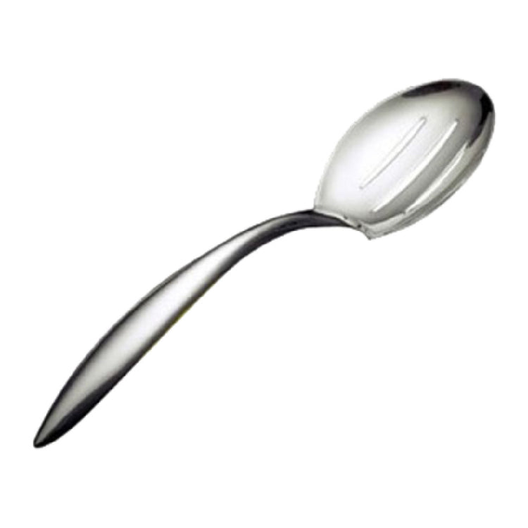 The Bon Chef 9464 EZ Use Banquet Serving Spoon is a versatile tool designed for efficient food service operations, measuring 9-3/4 inches in length. Crafted from 18/8 stainless steel, this serving spoon is both durable and resistant to corrosion, ensuring longevity in demanding environments. The high polish finish gives it an elegant appearance, suitable for upscale banquet settings. With its 1-ounce capacity, the spoon allows for precise portion control, a critical feature for chefs and caterers aiming to maintain consistency in serving sizes. Its slotted design aids in draining excess liquid from food, enhancing presentation and reducing mess. The hollow cool handle is a standout feature, providing a comfortable grip while minimizing heat transfer, a crucial advantage in handling hot dishes safely. The Bon Chef 9464 EZ Use Banquet Serving Spoon's thoughtful construction and materials make it a reliable choice for professionals in the hospitality industry, from large-scale banquet halls to intimate catering events, where efficiency and presentation are paramount. This serving spoon embodies a balance of practicality and style, making it an essential component for any culinary setting that values precision and durability in its service utensils.