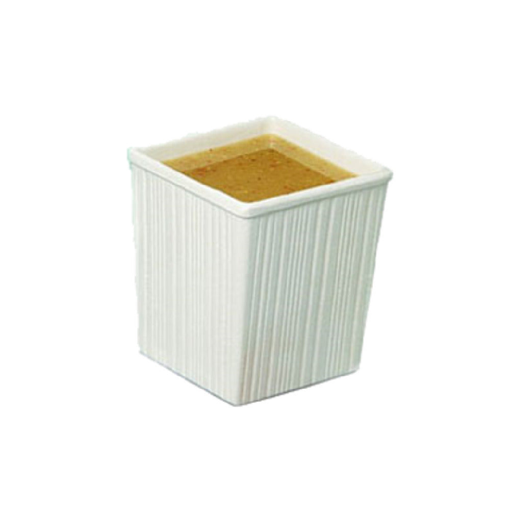 The Bon Chef 9504IVY Dressing Container is a versatile storage solution with a capacity of 3 qt. 4 oz., making it suitable for a variety of culinary applications. This container is designed in a compact square format, measuring 6-1/4" x 6-1/4" x 7", which serves as an effective space saver in busy kitchen environments. Crafted from aluminum, it features a distinctive ceramic-look coating that enhances its aesthetic appeal, while maintaining durability and function. The Sandstone Ivory finish provides a neutral yet elegant look, suitable for both professional and home settings. Additionally, this dressing container is NSF certified, ensuring it meets strict public health and safety standards, making it a reliable choice for food service professionals. Whether used in restaurants, catering services, or for home entertaining, the Bon Chef 9504IVY Dressing Container combines practicality with a refined appearance, serving diverse market segments with its robust design and appealing finish.