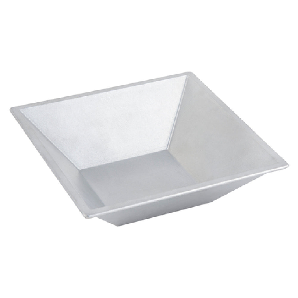 The Bon Chef 9510 Bowl 5 Qt. 12 Oz. is a meticulously crafted piece designed to meet the diverse needs of professional culinary environments. With dimensions of 14-1/4" x 14-1/4" x 4-1/4", this square bowl exhibits a unique flared design that enhances both its aesthetic appeal and practical functionality. Constructed from high-quality aluminum, it promises durability and longevity, making it an ideal choice for both commercial kitchens and upscale dining establishments. The bowl is finished with a Pewter-Glo coating, adding a refined touch that complements any table setting. Its substantial capacity of 5 quarts and 12 ounces allows for versatile use, accommodating a wide range of culinary applications from serving salads to holding side dishes. The Bon Chef 9510 Bowl is particularly suited for establishments that prioritize both style and efficiency, providing a reliable solution for presentation and service needs. This product exemplifies Bon Chef's commitment to quality and innovation in food service ware, making it an invaluable asset in the hospitality industry.