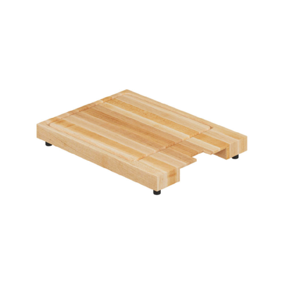 The Bon Chef 9658-CB-M Carving Board is a meticulously designed rectangular board measuring 24 inches by 18 inches, with a height of 2 inches, crafted specifically for professional and home culinary settings. This premium carving board is made from durable maple wood, known for its strength and longevity, ensuring it withstands the rigors of frequent use. It features a cutout designed for the Singe Square 9658 Heat Lamp, enhancing its functionality by seamlessly integrating with heating equipment for efficient meal preparation and service. The inclusion of a drip channel is a thoughtful feature that aids in maintaining cleanliness by capturing juices and ensuring a tidy workspace. To ensure stability during use, the board is equipped with rubber stoppers, preventing unwanted movement and enhancing safety. The Bon Chef 9658-CB-M Carving Board is an invaluable tool for different segment markets, including restaurants, catering services, and home kitchens, providing a reliable and efficient surface for carving and serving meats, demonstrating a commitment to quality and functionality. Its combination of practical design elements and premium materials highlights its utility and versatility in various culinary environments.