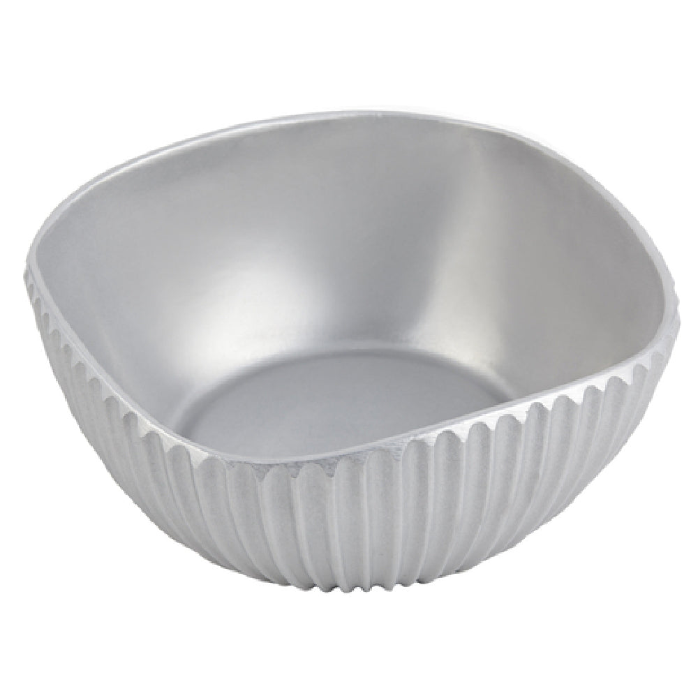 The Bon Chef 9912 Bowl, measuring 8" x 8" x 3-1/2", is a square-shaped dish distinguished by its ribbed design, offering a unique touch to culinary presentation. Crafted from high-quality aluminum, this bowl is coated with a ceramic-looking finish that enhances its aesthetic appeal while maintaining durability. The Pewter-Glo finish provides a sophisticated and elegant look, making it suitable for upscale dining environments. This versatile bowl is ideal for various segments within the food service industry, from fine dining restaurants to catering services, due to its combination of style and substance. Its square form and distinctive ribbing not only add to the visual appeal but also enhance grip and handling, making it a practical choice for chefs and servers alike. The Bon Chef 9912 Bowl's technical construction ensures it is lightweight yet robust, offering ease of use and longevity in demanding culinary settings. With its chic design and sturdy build, this bowl stands out as a valuable addition to any professional kitchen, ready to elevate the presentation of diverse culinary creations.