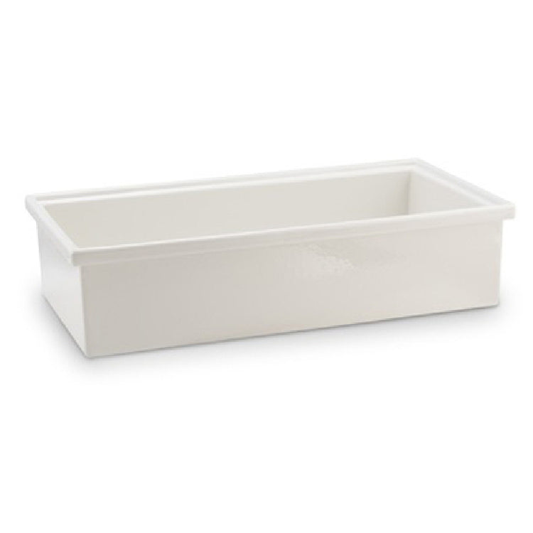 The Bon Chef EZ-13-3IVYSPKLD EZ Fit Smart Bowl 1/3 Size 3" Deep is a versatile and elegant serving solution, engineered to meet the diverse demands of the food service industry. This bowl is designed with a 1/3 size format and measures 3 inches deep, offering a substantial 3-quart capacity for various culinary applications. Its dimensions are 12-1/8 inches by 6-7/10 inches, making it a practical addition to buffet settings, catering events, and restaurant presentations. Crafted from premium aluminum, the bowl features a ceramic-look coating that enhances its aesthetic appeal while maintaining durability. The Sandstone finish in an Ivory Speckled pattern provides a sophisticated and timeless appearance, suitable for upscale dining environments. The Bon Chef EZ Fit Smart Bowl is NSF certified, ensuring compliance with rigorous public health and safety standards. This product represents a perfect blend of form and function, catering to professionals in the hospitality sector who require reliable performance and stylish design in their serviceware. Whether used for displaying salads, entrees, or sides, this smart bowl delivers exceptional value by combining a high-end look with practical features tailored to the needs of the industry.