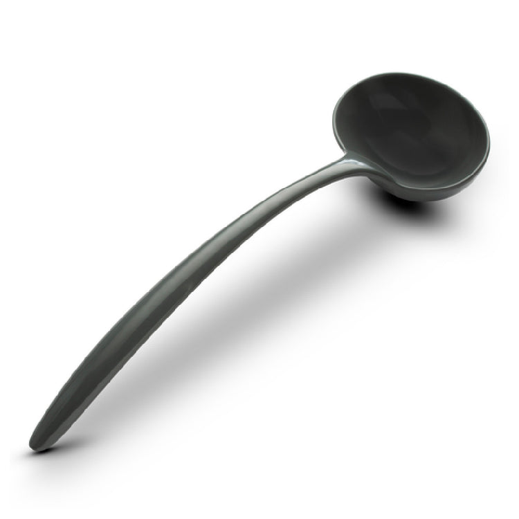 The Bon Chef M-9456-GM EZ Use Banquet Serving Ladle is a versatile tool designed for efficient food service in banquet settings. With a substantial length of 15 inches, this ladle ensures ease of handling and precise serving, minimizing spillage and enhancing presentation. It has a capacity of 6 ounces, making it suitable for portion control in large-scale catering environments. Crafted from durable melamine, known for its robust and long-lasting properties, this ladle is built to withstand the demands of frequent use in professional kitchens while maintaining its pristine condition. The gun metal finish not only adds an aesthetic appeal but also integrates seamlessly with other kitchen utensils and serving ware. Packaged in quantities of 72 per case, the Bon Chef M-9456-GM is ideal for large-volume operations, providing consistency and uniformity across banquet services. This ladle is favored by catering companies and hospitality venues for its combination of functionality, durability, and stylish design, making it an essential component for efficient and elegant food service. Its thoughtful construction caters to the needs of various segments within the food service industry, ensuring that each serving is both practical and visually appealing.