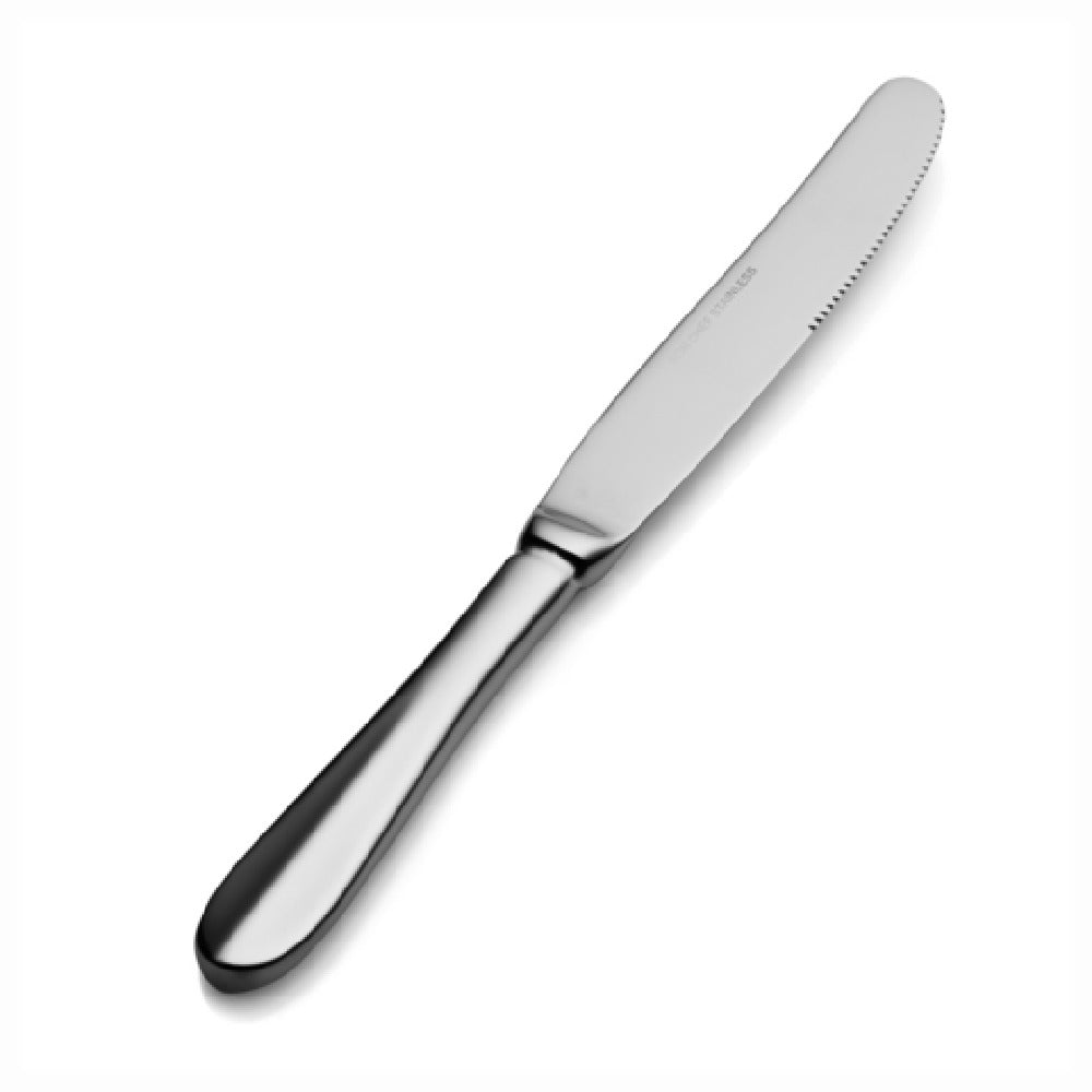 The Bon Chef S109 Monroe Dinner Knife is a precision-crafted utensil, designed with a hollow handle and measuring 9.30 inches in length. Made from 13/0 stainless steel, this dinner knife is tailored for durability and corrosion resistance, making it a reliable choice for various dining environments. The hollow handle not only contributes to its lightweight nature, ensuring ease of use and comfort during dining services, but also adds a touch of sophistication to its appearance. Its sleek design makes it versatile enough to complement any table setting, from upscale restaurants to casual dining venues. The use of 13/0 stainless steel ensures the knife maintains its luster and performance under frequent use, meeting the rigorous demands of the hospitality industry. This dinner knife is part of Bon Chef's commitment to quality and functional elegance, catering to the needs of food service professionals who value both aesthetic and practicality. Whether enhancing the dining experience in a bustling restaurant or adding a refined touch to a catered event, the Bon Chef S109 Monroe Dinner Knife stands as a testament to superior craftsmanship and versatile design.