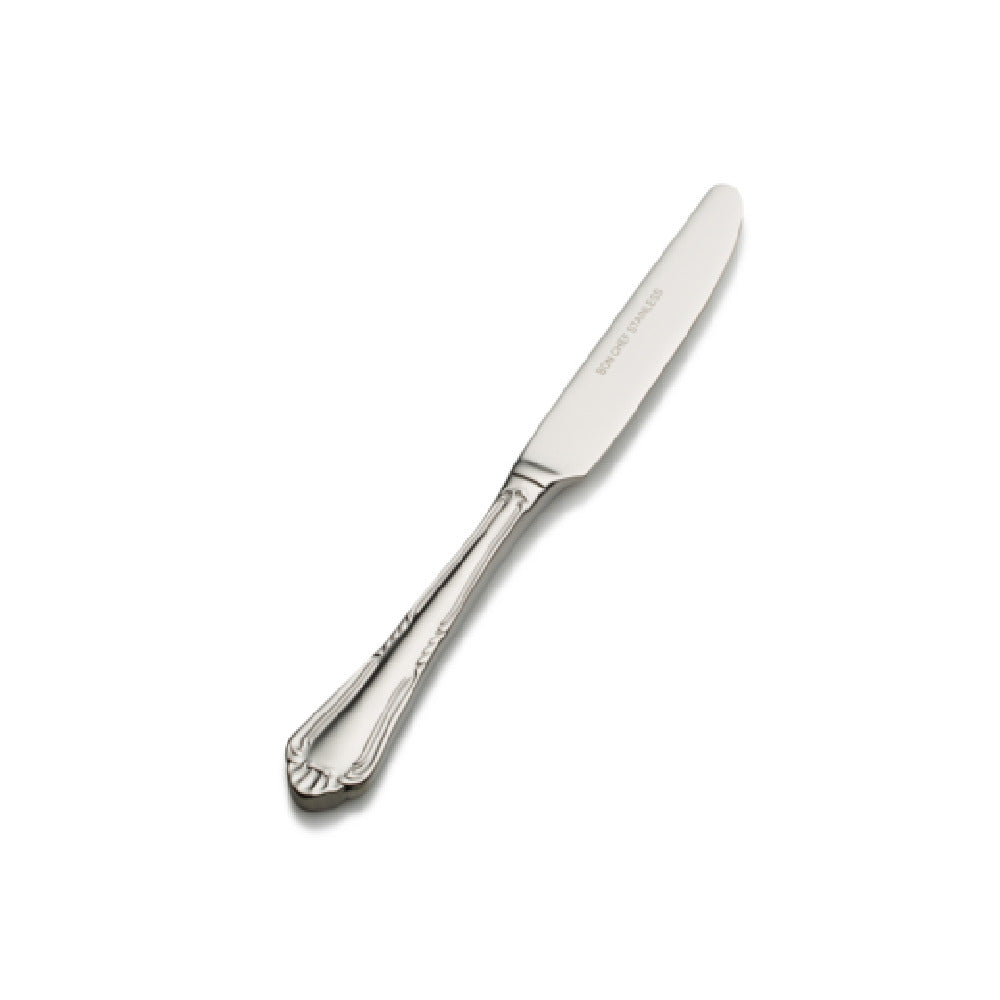 The Bon Chef S1517 Sorento European Butter Knife is expertly crafted with a solid handle, measuring 6.95 inches, and is constructed from 13/0 stainless steel, ensuring both durability and a refined appearance. This butter knife is an embodiment of European elegance, designed to enhance any dining experience with its sophisticated style. The solid handle provides a comfortable and secure grip, making it an excellent choice for both casual and formal dining settings. Its 13/0 stainless steel composition offers a balance of corrosion resistance and affordability, making it suitable for high-volume hospitality environments as well as home use. This knife is ideal for spreading butter and other soft spreads with precision and ease, meeting the needs of various market segments from upscale restaurants to everyday household kitchens. Its sleek design complements any table setting, adding a touch of class and elegance. The Bon Chef S1517 Sorento European Butter Knife is a versatile and stylish addition to any cutlery collection, offering both functionality and aesthetic appeal to cater to a wide range of culinary environments. This product stands out for its quality construction and timeless design, making it a valuable tool for enhancing any dining experience.