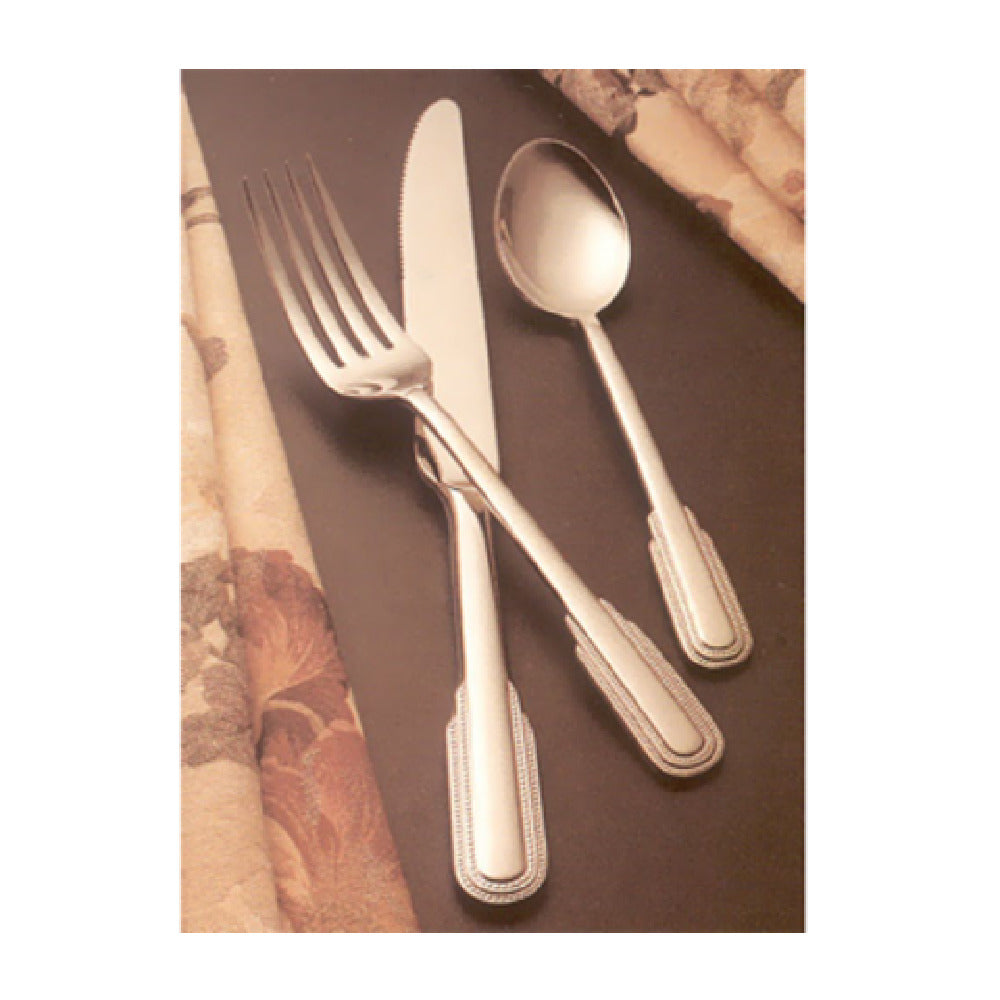 The Bon Chef S2401 Empire Bouillon Spoon - 6.23" - 18/10 Stainless Steel is an exceptional piece of flatware designed for both style and functionality, making it indispensable within the culinary industry. Crafted with 18/10 stainless steel, this spoon offers superior quality and a polished finish that ensures both durability and a refined dining experience. The 6.23-inch length is ideal for serving bouillon and other liquid-based dishes, offering precision and convenience in every use. The choice of 18/10 stainless steel not only provides resistance to rust and corrosion but also gives the spoon a mirror-like sheen that enhances table presentations in upscale dining settings. Its ergonomic design caters to a comfortable grip, appealing to both commercial establishments and home enthusiasts who value elegance and performance. The Bon Chef S2401 Empire Bouillon Spoon is especially suitable for restaurants, hotels, and catering services that prioritize top-tier serviceware. Its classic yet contemporary design seamlessly complements a wide range of table settings, reflecting the quality standards that Bon Chef is known for in the hospitality industry. This bouillon spoon stands out as a testament to meticulous craftsmanship and enduring style, meeting the diverse needs of professional and personal use alike.