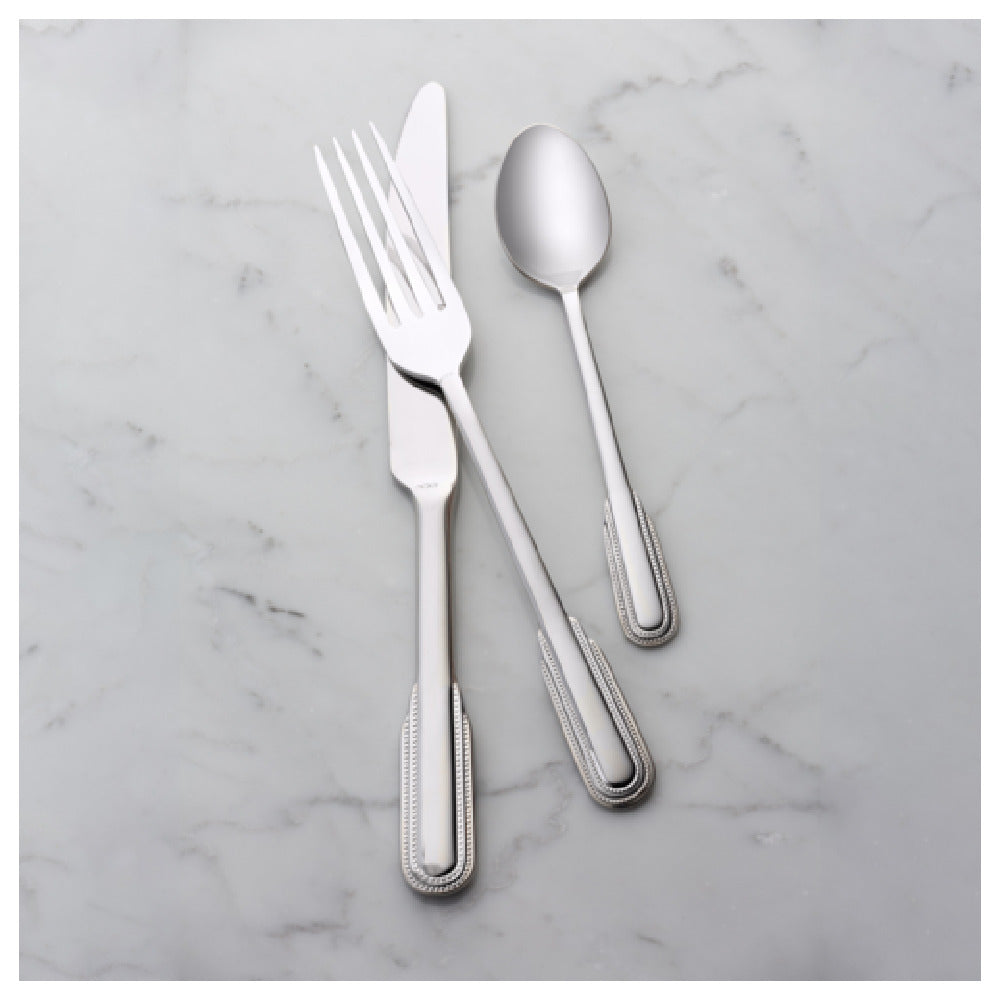 The Bon Chef S2408 Empire Oyster/Cocktail Fork 5.64" 18-10 Stainless Steel is a meticulously crafted utensil designed for culinary excellence. This fork, measuring precisely 5.64 inches, is ideal for a variety of dining settings, from seafood-focused establishments to elegant cocktail parties. The product is constructed from 18-10 stainless steel, indicating a superior composition of 18% chromium and 10% nickel, which provides exceptional durability and resistance to corrosion, ensuring longevity even with frequent use. This enhances its appeal in both high-end restaurants and casual dining atmospheres where quality and resilience are paramount. The thoughtfully designed sleek and modern aesthetic of the Empire Oyster/Cocktail Fork caters to the sophisticated tastes of Michelin-star chefs and discerning hosts alike, making it a versatile addition to any flatware collection. Its ergonomic design makes it comfortable to handle, offering an effortless dining experience whether it is used for enjoying oysters, hors d'oeuvres, or other delicate dishes. Suitable for a broad range of culinary environments, this fork exemplifies the perfect blend of functional precision and timeless elegance, aligning with Bon Chef’s reputation for high-quality kitchenware that meets the diverse needs of the food service industry.