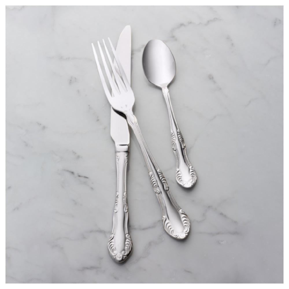 The Bon Chef S2512 Elegant European Dinner Knife with a solid handle measures 9.83 inches, crafted meticulously from 13/0 stainless steel. This remarkable piece stands out in the cutlery industry by marrying traditional European elegance with modern durability. Its solid handle provides a comfortable and balanced grip, essential for both professional chefs and home cooks who value precision and ease in meal preparation. The 13/0 stainless steel construction not only enhances the knife's resistance to corrosion but also ensures an enduring shine, making it a sophisticated addition to any dining setting. This dinner knife is particularly suitable for upscale restaurants, catering services, and households that prioritize quality in their dining experiences. Its classic design complements a wide array of table settings, from casual dinners to formal banquets, showcasing versatility that appeals to diverse segments in the dining industry. This knife reflects Bon Chef's commitment to quality and style, making it a trusted tool for those who demand excellence in their culinary pursuits. The Bon Chef S2512 not only meets the functional requirements but also elevates the dining aesthetics, making it a perfect blend of form and function.