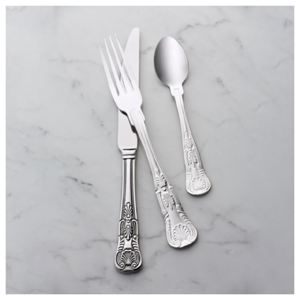 The Bon Chef S2701 Kings Bouillon Spoon is a meticulously crafted utensil, measuring 6.22 inches in length and made from 18/10 stainless steel. This high-quality tableware piece is designed with precision, offering a perfect blend of functionality and elegance. The 18/10 stainless steel composition ensures superior durability and resistance to corrosion, making it a reliable choice for both commercial and residential settings. The spoon's design is well-suited for various dining environments, from upscale restaurants to family gatherings, where it can enhance the dining experience with its refined aesthetic. The Kings Bouillon Spoon is particularly valued in the hospitality industry, where its robust construction and polished finish make it an excellent choice for high-turnover dining establishments. Additionally, its ergonomic structure provides comfort and ease of use, ensuring that it meets the demands of busy food service operations. In essence, the Bon Chef S2701 Kings Bouillon Spoon combines timeless design with practical features, making it a versatile asset across multiple market segments within the dining and hospitality industries.