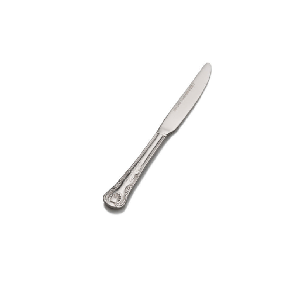 The Bon Chef S2717 Kings European Butter Knife - solid handle - 6.88" is meticulously crafted for a sophisticated dining experience, merging elegance with functionality. This butter knife is constructed from 13/0 stainless steel, a material chosen for its durability and resistance to wear, which ensures long-lasting service in both domestic and professional settings. With a solid handle design, this knife provides a balanced feel and comfortable grip, enhancing the user's experience during use. Measuring precisely at 6.88 inches, it is ideally suited for spreading butter and other soft condiments with ease and precision. The Bon Chef S2717 Kings European Butter Knife's design reflects a commitment to quality and tradition, making it a distinguished choice for upscale dining environments, such as high-end restaurants, hotels, and catering services. Its classic and refined aesthetic seamlessly complements a variety of table settings, while its robust construction supports frequent use in busy culinary operations. This butter knife stands out in the cutlery market, offering a reliable and stylish solution for both casual and formal dining applications, catering to diverse needs in the culinary industry.