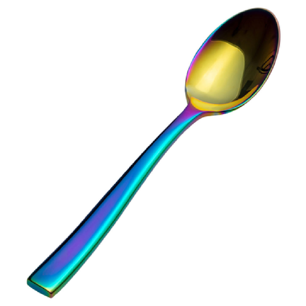 The Bon Chef S3000RB Manhattan Teaspoon - 6-1/2" is crafted from premium 18/10 stainless steel, offering a durable and corrosion-resistant dining solution that maintains its polished shine over time. This teaspoon features a PVD coating in an eye-catching rainbow finish, bringing a vibrant and modern aesthetic to any table setting. Measuring 6-1/2 inches in length, the Manhattan Teaspoon provides an ideal size for stirring beverages or serving desserts, making it a versatile tool for both home and commercial use. The high-quality 18/10 stainless steel construction ensures longevity and reliability, even with frequent use, making it suitable for high-volume environments such as restaurants, cafes, and hotels. The rainbow PVD coating not only enhances its decorative appeal but also adds an extra layer of scratch resistance, ensuring the utensil retains its striking appearance. Perfect for industry professionals who value both functionality and design, the Bon Chef S3000RB Manhattan Teaspoon complements a wide range of tableware styles, offering a unique value proposition for establishments seeking to enhance their dining experience with contemporary flair. As a piece that combines practicality with artistic design, it serves as an outstanding choice for diverse market segments interested in high-quality flatware.