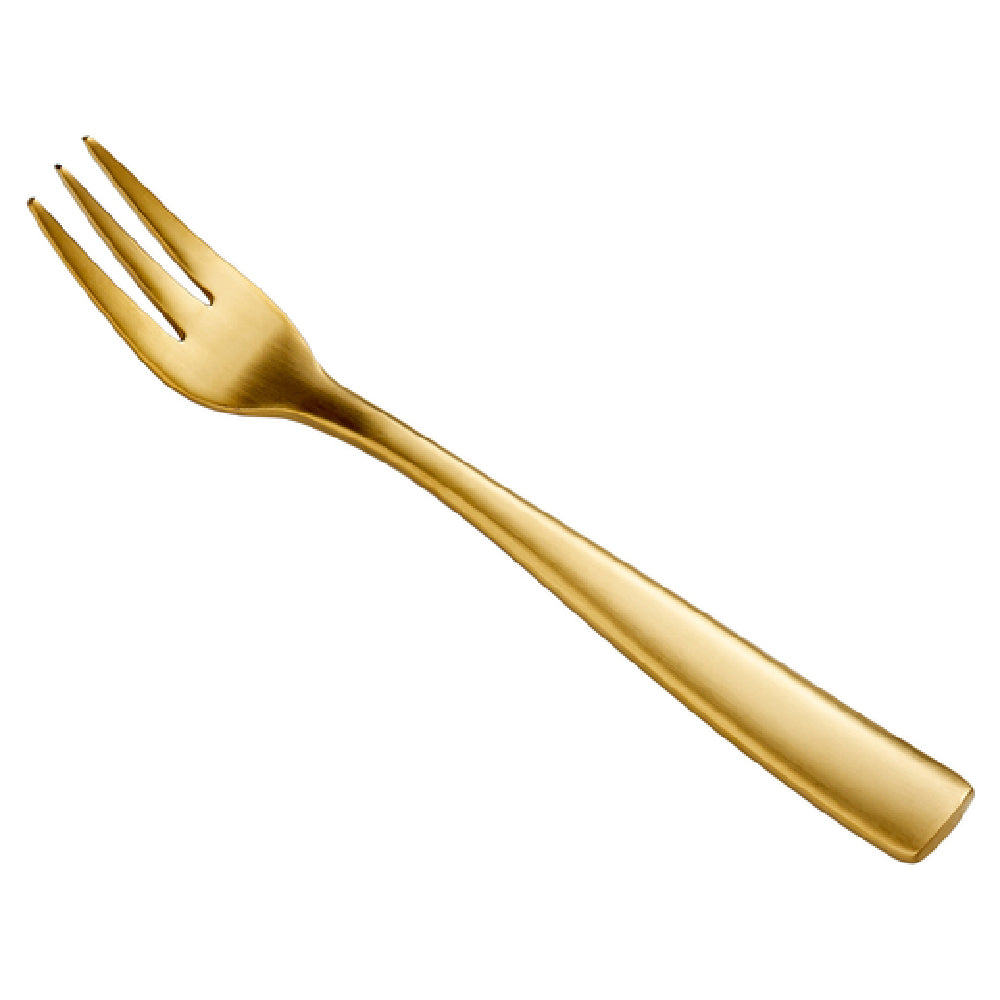 Bon Chef S3008GM Manhattan Oyster/Cocktail Fork 5-3/8" 18/10 Stainless Steel is a premium utensil crafted for fine dining and catering environments. This oyster/cocktail fork is meticulously designed with an elegant 5-3/8-inch length, providing an ideal balance of functionality and style. Made from high-grade 18/10 stainless steel, the fork offers exceptional durability and resistance to corrosion, ensuring long-lasting performance in both commercial and home settings. Its PVD coating enhances its resilience and lends a sophisticated gold, matte finish that adds an element of luxury to any table setting. This fork is particularly suited for upscale restaurants, hotels, and catering services that wish to leave a lasting impression on their clientele. Its unique finish and high-quality construction make it a perfect choice for events where attention to detail and quality are paramount. The Bon Chef S3008GM fork combines practical utility with an aesthetically pleasing design, making it a versatile tool for any professional or casual dining experience looking for elegance and reliability in their cutlery collection.
