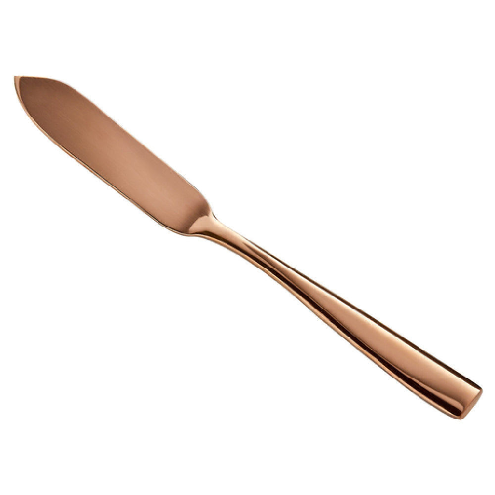 The Bon Chef S3010RG Manhattan Butter Knife is a meticulously crafted utensil, measuring 6-5/8 inches in length, designed to enhance dining experiences across various segments within the hospitality industry. Made from high-quality 13/0 stainless steel, this butter knife ensures durability and resistance to corrosion, making it a reliable choice for both casual and fine dining establishments. The knife features a PVD coating, which not only adds a layer of robustness but also imparts a striking rose gold hue, elevating table aesthetics with its luxurious appearance. Its mirror finish further enhances its visual appeal, reflecting light elegantly to complement sophisticated table settings. The Bon Chef S3010RG is particularly suited for upscale restaurants, hotels, and catering services that wish to provide a touch of elegance and refinement. This butter knife seamlessly combines functionality with style, making it an ideal choice for venues that prioritize both performance and presentation. Its precise construction and attention to detail make it a valuable addition to any cutlery collection, ensuring it meets the diverse needs of the food service industry while maintaining a high standard of quality and design excellence.