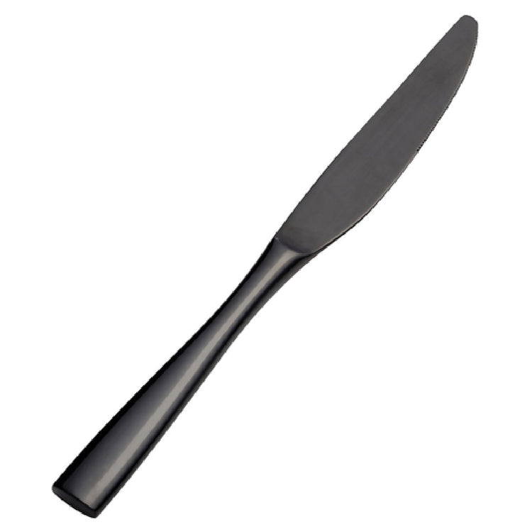 The Bon Chef S3011B Manhattan Dinner Knife 9" Solid Handle is a distinguished utensil crafted with precision for both aesthetic appeal and practical functionality. Featuring a solid handle, this knife is meticulously constructed from 13/0 stainless steel, ensuring durability and corrosion resistance, making it ideal for both residential and commercial dining settings. The knife's PVD coated finish enhances its surface hardness and scratch resistance, providing a sleek black appearance that complements a variety of table settings. The mirror finish adds a touch of elegance, reflecting light to enhance the dining experience. With a length of 9 inches, this dinner knife is perfectly balanced for comfortable use, catering to the needs of fine dining establishments and catering services. Its robust construction ensures it can withstand the rigors of frequent use, making it a reliable choice for hospitality professionals seeking durable cutlery solutions. The sophisticated design of the Bon Chef S3011B Manhattan Dinner Knife makes it suitable for upscale restaurants, hotels, and other service industries that demand both style and substance in their tableware. This knife embodies a harmonious blend of form and function, making it a valuable addition to any dining collection.