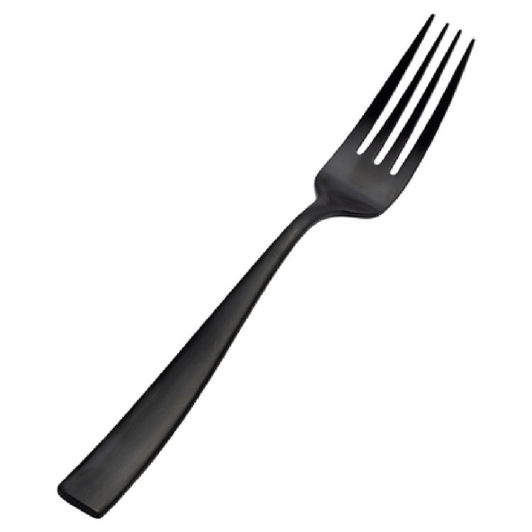 The Bon Chef S3017BM Manhattan European Dinner Fork measures 8-3/8 inches in length, crafted from high-quality 18/10 stainless steel, ensuring both durability and resistance to corrosion. This cutlery piece is distinguished by its PVD coating, which not only enhances its strength but also imbues it with a sophisticated black, matte finish that is both elegant and modern. Such a design makes it an excellent choice for upscale dining establishments seeking to elevate their table settings with a touch of contemporary flair. The fork's European size is larger than standard options, offering a unique dining experience that can cater to the refined tastes of a more discerning clientele, making it suitable for use in both luxury restaurants and high-end catering services. The combination of advanced materials and sleek design ensures that this dinner fork not only performs superbly under regular use but also maintains its aesthetic appeal over time, making it a valuable addition to any cutlery collection. Its versatile design is particularly ideal for establishments that prioritize both functionality and style in their tableware, providing a perfect balance of elegance and practicality.