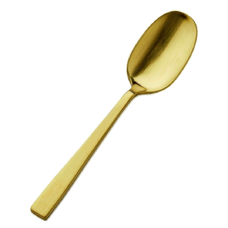 The Bon Chef S3703GM Roman Soup/Dessert Spoon is a meticulously crafted utensil, measuring 6-1/4 inches in length, tailored for both elegant dining and functional use. This spoon is constructed from high-quality 18/10 stainless steel, known for its superior resistance to rust and corrosion, ensuring long-lasting durability and a pristine appearance. The gold matte finish elevates its aesthetic appeal, introducing a touch of luxury to any table setting, making it ideal for upscale restaurants and sophisticated home dining experiences. This versatile utensil is applicable in various segments of the food service industry, from fine dining establishments to high-end catering services, where the presentation and functionality of dining tools are paramount. The ergonomic design of the Bon Chef S3703GM Roman Spoon promotes ease of use, providing comfort and precision whether scooping soup or indulging in dessert. Its balanced weight and smooth contours offer users an exceptional dining experience, while the gold matte finish adds a distinctive visual charm. This combination of aesthetic elegance and functional design makes the Bon Chef S3703GM a valuable addition to any culinary setting that prioritizes both style and performance in its tableware selection.