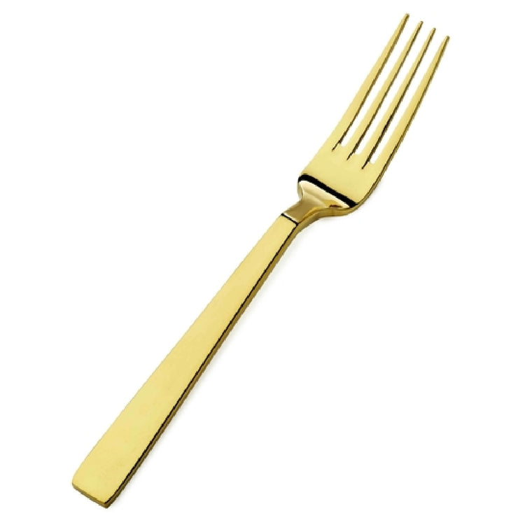 The Bon Chef S3706G Roman Euro Dinner Fork is an exquisite piece of cutlery, precisely crafted to enhance dining experiences across various culinary industries. Measuring 8-1/8 inches in length, this dinner fork is part of the Roman Euro collection, renowned for its elegant design and superior functionality. Constructed from 18/10 stainless steel, it boasts an exceptional resistance to corrosion and a lustrous finish that elevates any table setting. What sets this fork apart is its sophisticated gold accent, which adds a touch of luxury and makes it a standout choice for upscale restaurants and catering events. This blend of materials ensures durability and a high-quality grip, making it an invaluable addition to the hospitality and food service sectors. Whether for fine dining establishments or high-end caterers, the Bon Chef S3706G Roman Euro Dinner Fork seamlessly combines aesthetic appeal with practical utility, promising consistent performance and timeless elegance.