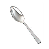 The Bon Chef S3716 Roman Demitasse Spoon is meticulously crafted from 18/10 stainless steel, ensuring both durability and an elegant shine, ideal for the hospitality industry. At 4-1/2 inches in length, this spoon is perfectly sized for serving espresso or small desserts, offering a sophisticated touch to any table setting. The high-grade stainless steel composition provides excellent resistance to rust and corrosion, making it suitable for frequent use in busy restaurants, cafes, or catering services. Its Roman-inspired design adds a timeless elegance that complements a variety of dining aesthetics, appealing to upscale dining establishments as well as casual coffee shops looking to enhance their service presentation. The Bon Chef S3716's robust construction ensures it maintains its shape and luster through daily use and cleaning, providing a reliable tool for professionals seeking both form and function. Its balanced weight and ergonomic design offer a comfortable grip for users, making it a practical choice for both servers and patrons. This demitasse spoon represents a blend of style and substance, catering to different market segments—from luxury venues prioritizing aesthetic appeal to high-volume operations that demand durability and ease of maintenance. Its superior materials and sophisticated design make it a valuable asset to any food service establishment.