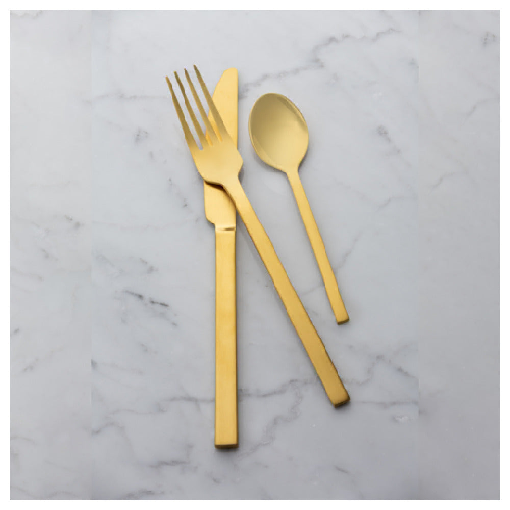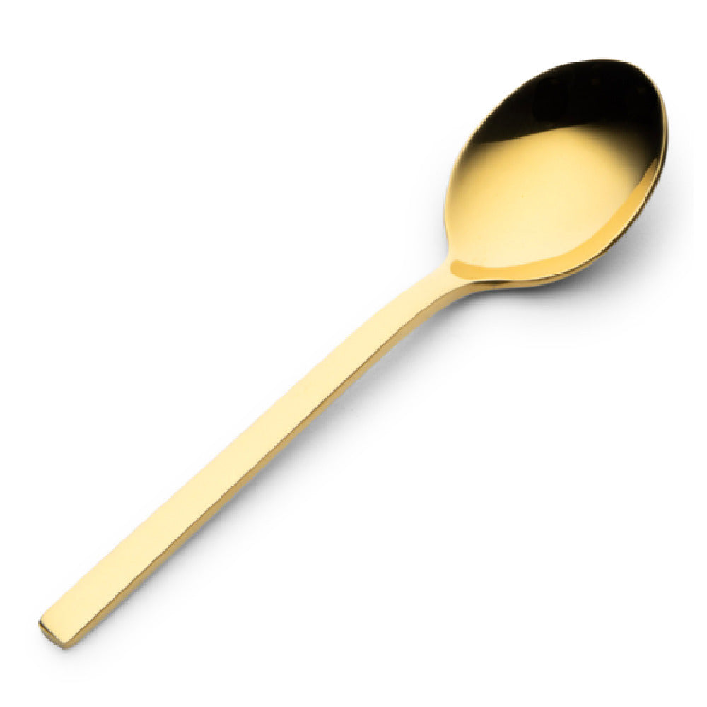 The Bon Chef S3800G Milan Teaspoon is a meticulously crafted utensil measuring 5.5 inches, designed to bring elegance and functionality to any dining setting. Constructed from high-quality 18/10 stainless steel, this teaspoon exemplifies durability and resistance to corrosion, ensuring longevity even in the most demanding environments. The PVD coating enhances its aesthetic appeal with a luxurious gold hue, while the mirror finish adds a touch of sophistication. This makes it an ideal choice for upscale restaurants and catering businesses that prioritize both style and quality. Its size is perfectly engineered for both comfort and practicality, making it suitable for a wide range of service applications from formal dining to casual settings. The Bon Chef S3800G Milan Teaspoon's combination of superior materials and exquisite design marks it as a premium selection for those in the hospitality and food service industries, as well as for consumers seeking to elevate their home dining experience. Its robust material composition and elegant finish make it not only a practical tool but also a statement piece in any cutlery collection.