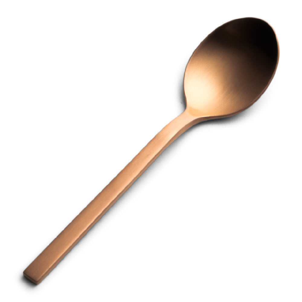 The Bon Chef S3800RGM Milan Teaspoon 5.5" 18-10 Stainless Steel is a meticulously crafted utensil designed to elevate dining experiences with its superior construction and aesthetic appeal. This teaspoon, measuring 5.5 inches, is made from high-quality 18-10 stainless steel, a composition renowned for its strength, durability, and resistance to corrosion, making it an ideal choice for both casual and upscale dining environments. The surface of the Milan Teaspoon is enhanced with a PVD coating, imparting a stunning rose gold hue that adds a touch of sophistication and luxury to any table setting. The matte finish further complements its elegant design, offering a soft and refined texture that is pleasing to the eye and touch. This unique combination of materials and finishes not only ensures longevity and maintains its visual appeal over time but also provides versatility in complementing various dinnerware styles. Whether used in fine dining restaurants, catered special events, or upscale home settings, the Bon Chef S3800RGM Milan Teaspoon stands out as a premium choice for those seeking a blend of functionality and elegance in their cutlery selections. Each feature of this teaspoon, from its precise dimensions to its luxurious finish, is tailored to meet the discerning expectations of diverse market segments within the hospitality industry.
