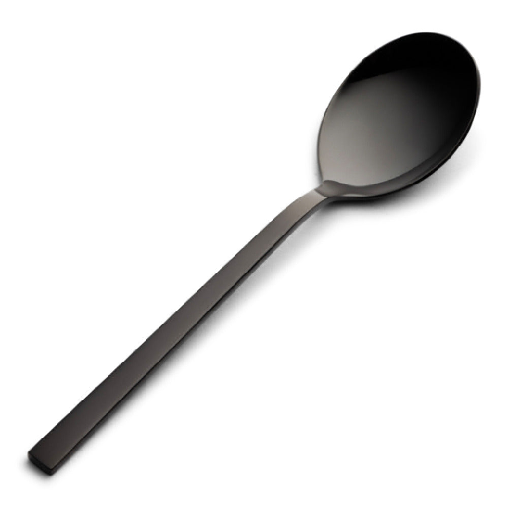 The Bon Chef S3803BM Milan Bouillon Spoon - 7.13" - 18/10 Stainless Steel is a meticulously crafted piece of cutlery that combines both elegance and functionality, making it a perfect addition to any sophisticated table setting. This bouillon spoon, measuring 7.13 inches in length, is engineered with precision from 18/10 stainless steel, which signifies its composition of 18% chromium and 10% nickel, enhancing its durability and resistance to corrosion. The spoon's black, matte finish is achieved through PVD coating, a process that not only adds an aesthetically pleasing modern touch but also increases hardness and wear resistance, ensuring longevity even with frequent use. The Bon Chef S3803BM is particularly well-suited for upscale dining establishments, catering services, and hotels that aim to deliver an exceptional dining experience. Its refined design and robust construction cater to diverse market segments within the hospitality industry, appealing to those who value both style and substance in their culinary tools. Whether used for serving soups, stews, or broths, this bouillon spoon offers a seamless blend of utility and sophistication. Its sleek appearance and strong build make it an indispensable component for any establishment striving for excellence in presentation and service.