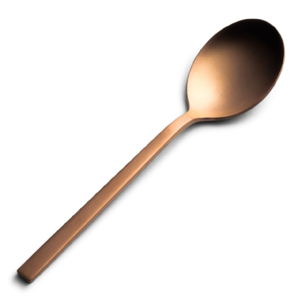 The Bon Chef S3803RGM Milan Bouillon Spoon 7.13" is a sophisticated piece of cutlery crafted with precision, tailored for the discerning professional or home chef. This spoon is constructed from 18/10 stainless steel, ensuring superior durability and resistance to corrosion, making it a reliable tool in any culinary environment. Its design is further enhanced by a PVD coating, presenting an elegant rose gold hue that adds a touch of luxury to your table setting. The matte finish of the spoon not only contributes to its aesthetic appeal but also provides a comfortable grip, enhancing usability in various dining scenarios. At 7.13 inches in length, this bouillon spoon strikes a perfect balance between size and functionality, ideal for enjoying soups and broths with ease. The Bon Chef S3803RGM Milan Bouillon Spoon is a versatile choice suitable for upscale restaurants, catering services, or refined home dining experiences, reflecting both style and practicality in its design. This product embodies the blend of form and function, offering a unique value proposition for professionals seeking efficient, elegant dining solutions, and individuals looking to elevate their dining ware with a touch of sophistication.