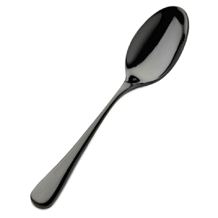 The Bon Chef S4000B Como Teaspoon 6-3/8" 18/10 Stainless Steel is a meticulously crafted utensil that stands out for its blend of elegance and durability. Made from 18/10 stainless steel, this teaspoon combines 18% chromium and 10% nickel, offering superior resistance to rust and corrosion, which is a hallmark of high-quality flatware. With a length of 6-3/8 inches, it is designed to fit comfortably in the hand, making it suitable for a variety of dining settings, from upscale restaurants to casual dining experiences. The black finish adds a contemporary flair, enhancing its appeal for modern table settings. This teaspoon is a versatile choice for food service professionals seeking both functionality and aesthetic appeal in their tableware essentials. Whether catering to fine dining establishments looking for sophisticated cutlery or cafes aiming to provide a modern dining experience, the Bon Chef S4000B Como Teaspoon delivers unparalleled quality. Its robust construction ensures longevity, making it a wise investment for any hospitality business focused on maintaining a high standard of service. This product exemplifies Bon Chef's commitment to excellence, providing a reliable and stylish option for diverse dining environments.