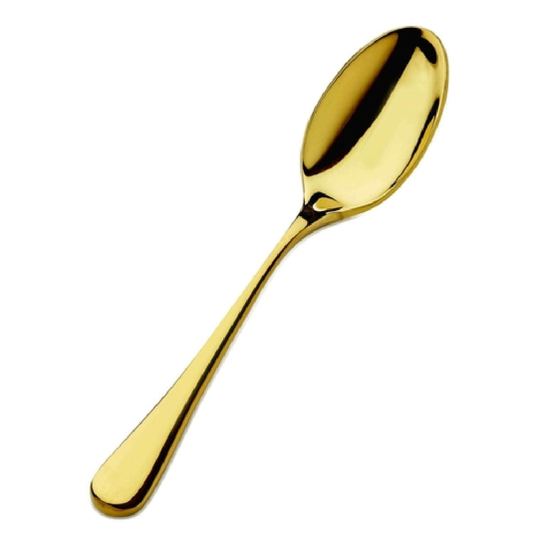 The Bon Chef S4000G Como Teaspoon is a meticulously crafted piece of cutlery, measuring 6-3/8 inches, and is constructed from premium 18/10 stainless steel, ensuring both durability and resistance to corrosion, making it a reliable choice for various dining settings. The teaspoon is distinguished by its elegant gold finish, adding a touch of sophistication that enhances the visual appeal of any table setting. This teaspoon is particularly suited for upscale dining establishments, catering services, and high-end hospitality sectors that demand both functionality and aesthetic appeal. The 18/10 stainless steel composition, which consists of 18% chromium and 10% nickel, not only provides superior strength and long-lasting use but also offers a lustrous shine that elevates the dining experience. The Bon Chef S4000G Como Teaspoon is an exemplary choice for professionals in the food service industry who prioritize quality and elegance in their cutlery selections. Its thoughtful design and high-quality construction make it a valuable addition to any collection, ensuring that it meets the rigorous demands of commercial use while maintaining its exquisite appearance and performance over time.