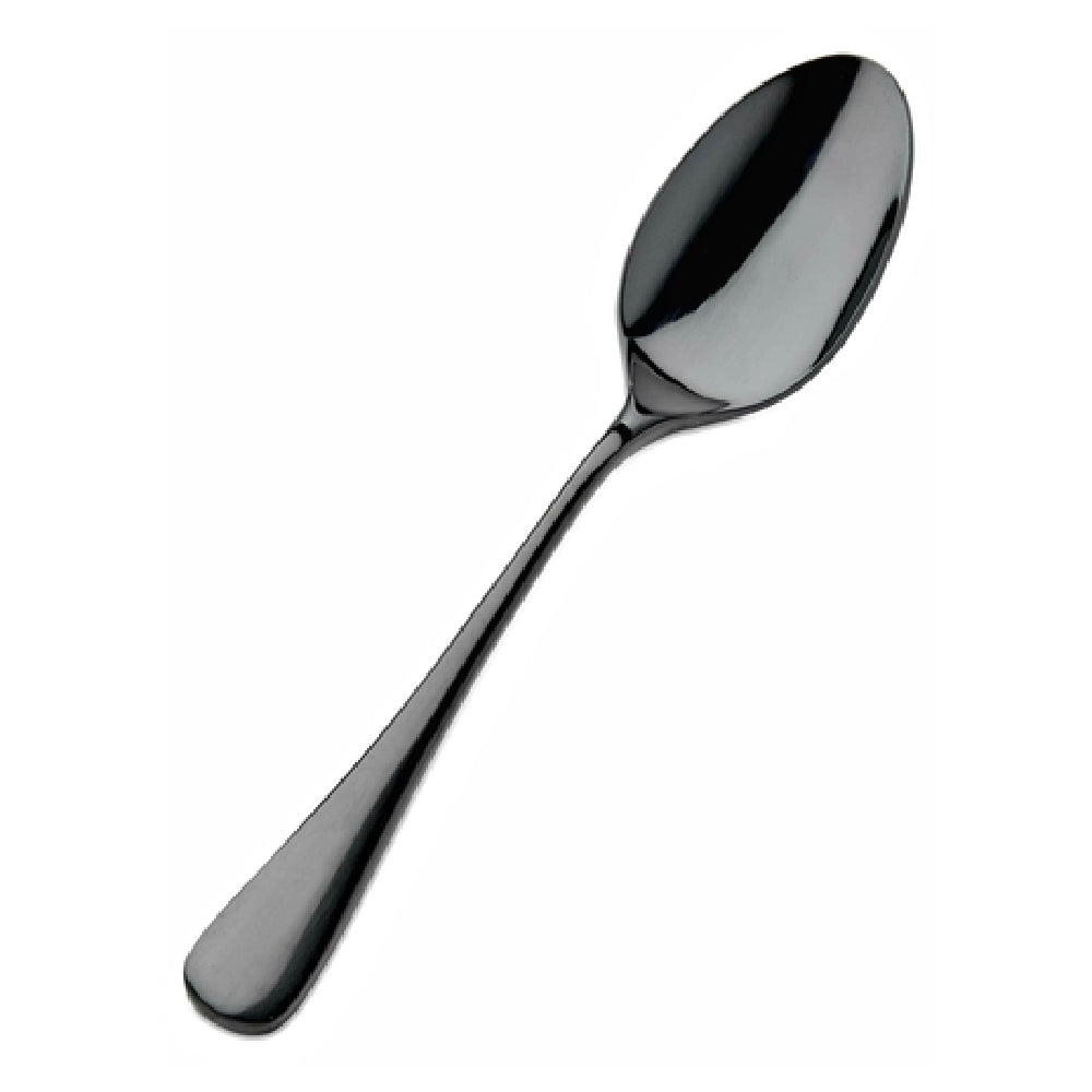 The Bon Chef S4003B Como Soup/Dessert Spoon is a distinguished piece that measures 8 inches and is crafted with 18/10 stainless steel, renowned for its superior durability and corrosion resistance. This spoon features an elegant black finish, adding a touch of sophistication to any dining setup. The 18/10 stainless steel composition, which includes 18% chromium and 10% nickel, ensures long-lasting shine and resilience, making it ideal for both everyday use and special occasions. The Bon Chef S4003B is designed to seamlessly blend into the culinary environments of upscale restaurants, hotels, and fine dining establishments. Its versatile size makes it perfect for enjoying a variety of soups and desserts, catering to the diverse needs of the food service industry. Moreover, the spoon's sleek design and high-quality material align well with the expectations of discerning customers who prioritize both functionality and aesthetics. Whether enhancing a formal table setting or elevating casual dining experiences, the Bon Chef S4003B Como Soup/Dessert Spoon is a valuable addition to any hospitality establishment seeking to provide guests with a memorable dining experience.