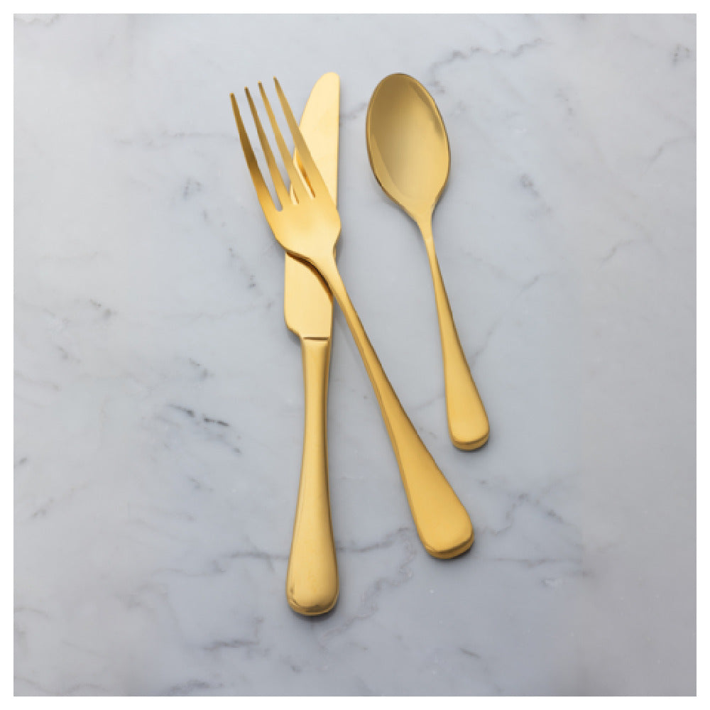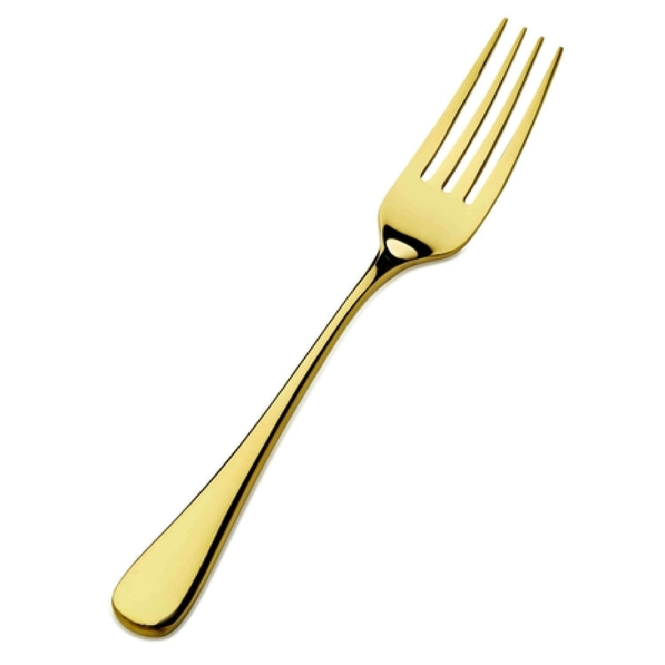 The Bon Chef S4005G Como Dinner Fork is a meticulously crafted dining utensil, measuring 8-1/4 inches in length, and is made from premium 18/10 stainless steel. This composition, featuring 18% chromium and 10% nickel, ensures exceptional durability and resistance to corrosion while providing a lustrous shine that enhances the dining experience. The fork's elegant gold accent adds a touch of sophistication, making it suitable for upscale dining settings, from fine dining restaurants to high-end catering events. Its well-balanced design and perfect length offer a comfortable grip, catering to both professional chefs and discerning diners who appreciate both functionality and style. The Bon Chef S4005G is ideal for establishments that prioritize quality and aesthetic appeal in their tableware, ensuring that every meal presentation is elevated to a new level of elegance. Its robust structure caters to frequent use in commercial settings while maintaining its pristine appearance over time. This dinner fork is a testament to Bon Chef's commitment to superior craftsmanship, making it a reliable choice for industry professionals seeking a blend of durability, beauty, and performance in their cutlery collection.
