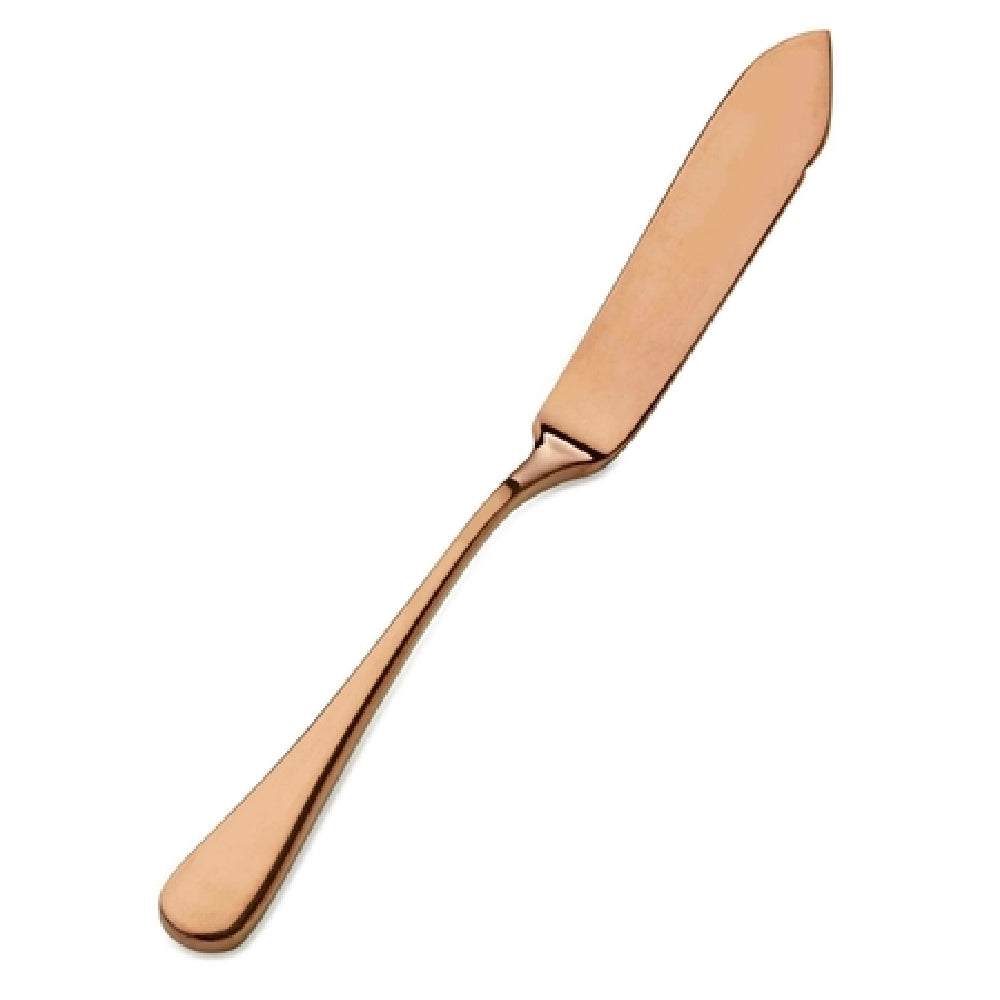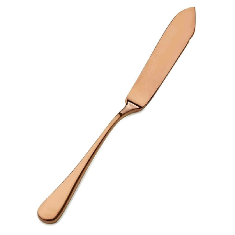 The Bon Chef S4010RG Como Butter Knife is a distinguished utensil measuring 6-3/4 inches in length, crafted from premium 13/0 stainless steel. Its sleek rose gold finish sets it apart in both aesthetic appeal and durability, making it a sophisticated addition to any table setting. This butter knife is an ideal choice for upscale dining environments, including high-end restaurants and luxury hotels, where attention to detail is paramount. Its construction from 13/0 stainless steel not only provides excellent resistance to corrosion and staining but also ensures a well-balanced weight, enhancing the user experience. The rose gold color offers a modern and elegant touch that complements a variety of tableware styles, appealing to culinary professionals seeking to elevate their presentation. The Bon Chef S4010RG Como Butter Knife is meticulously designed for butter spreading and other fine dining applications, ensuring functionality without compromising on style. Its unique composition allows it to withstand frequent use while maintaining its lustrous finish, catering to the needs of commercial food service operators who prioritize both performance and aesthetic excellence. This versatile butter knife embodies the intersection of practicality and elegance, making it a valuable asset for diverse dining settings.