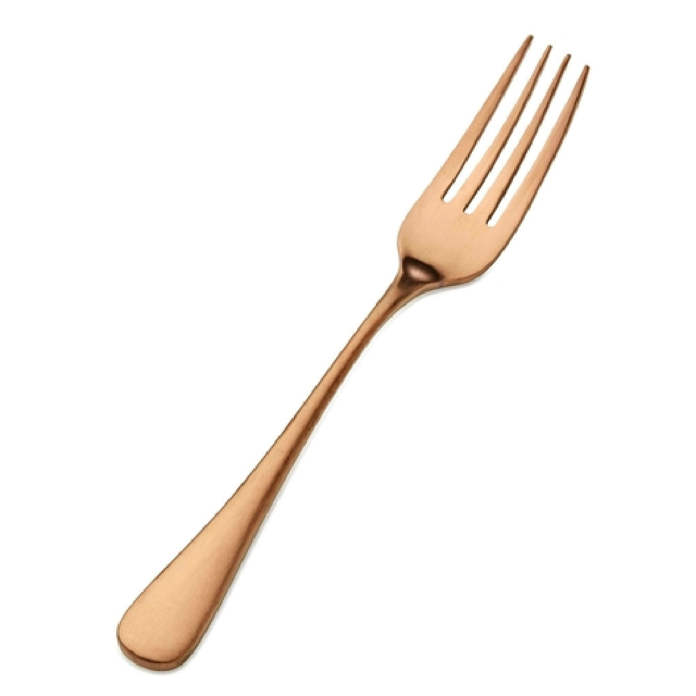 The Bon Chef S4105RGM Como Dinner Fork is meticulously crafted with an 8-1/4" length, showcasing a perfect blend of style and functionality for dining experiences. Made from 18/10 stainless steel, this dinner fork ensures superior durability and resistance to rust and corrosion, making it a lasting addition to any tableware collection. The rose gold matte finish adds a touch of elegance and modernity, appealing to upscale dining establishments and home dining alike. Its sophisticated design enhances the dining ambiance, making it an excellent choice for restaurants, catering services, and hospitality sectors looking to impress their guests with refined flatware. The Bon Chef S4105RGM Como Dinner Fork combines aesthetic appeal with high-grade materials to meet the diverse needs of various market segments within the food service industry, ensuring both practicality and style are achieved. Its well-balanced weight and comfortable grip make it suitable for both formal and casual settings, offering a versatile option for any culinary presentation. This product exemplifies Bon Chef's commitment to quality and innovation in tableware design, providing a unique value proposition for those seeking premium cutlery solutions.