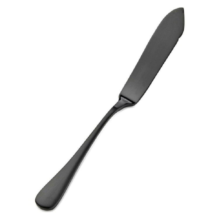 The Bon Chef S4110BM Como Butter Knife is a meticulously crafted utensil measuring 6-3/4 inches, designed to enhance dining experiences with precise attention to detail. Constructed from 13/0 stainless steel, this butter knife combines durability with a sophisticated aesthetic, ensuring it withstands the rigors of regular use while maintaining its polished appearance. The black matte finish adds a contemporary touch, making it a versatile accessory for both traditional and modern table settings. Ideal for hospitality and catering industries, the S4110BM is especially suited for environments where style and functionality are paramount. Its ergonomic design ensures comfortable handling and precise butter application, catering to the needs of professional chefs and food service operators who prioritize both form and function. The Bon Chef S4110BM Como Butter Knife is more than a kitchen utensil; it is a statement piece that elevates the dining experience, seamlessly blending utility with elegance in a variety of food service contexts.