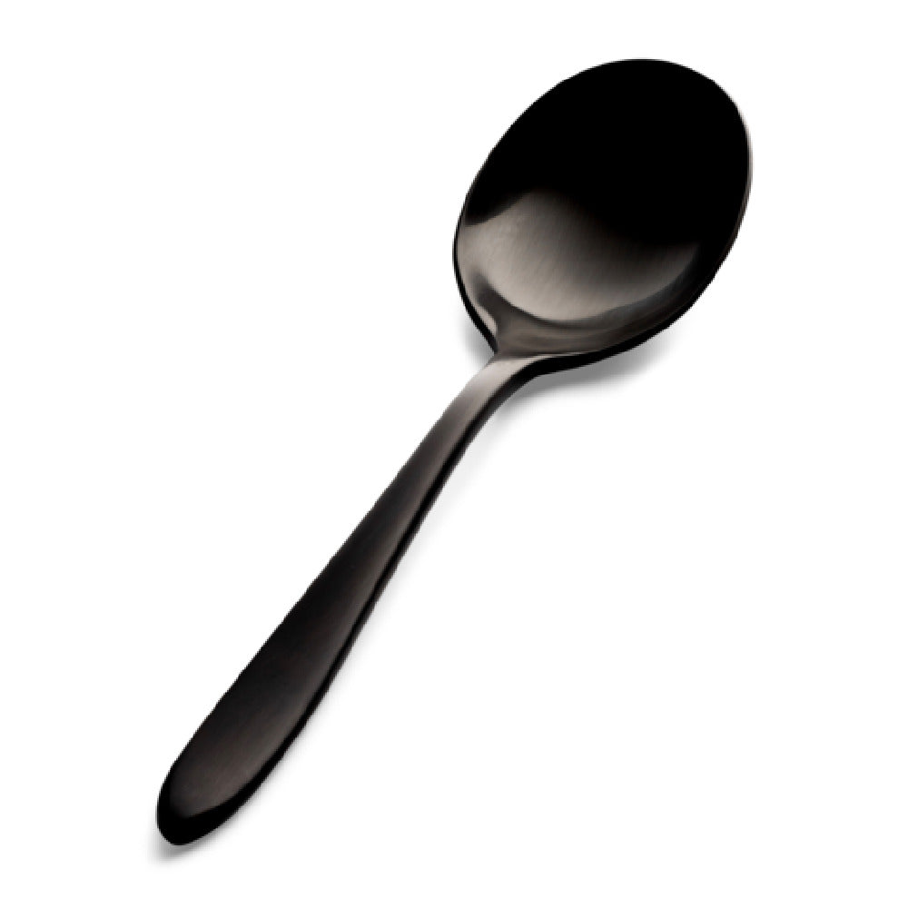 The Bon Chef S4401BM Luce Bouillon Spoon is a meticulously crafted utensil, designed to enhance both functionality and aesthetics in any dining setting. Measuring at 6.36 inches, it is perfectly balanced for precision and ease of use. Made from 18/10 stainless steel, this spoon is not only resistant to rust and corrosion but also offers a high level of durability, making it ideal for both residential and commercial use. The black matte finish adds a contemporary and sophisticated touch, appealing to upscale restaurants and catering events aiming to impress guests with their attention to detail. The high-quality material ensures the spoon retains its elegant appearance even after repeated use and washing. This bouillon spoon is particularly suitable for serving soups and broths, offering a seamless dining experience with its ergonomic design. The Bon Chef S4401BM Luce Bouillon Spoon stands out in the market for its superior craftsmanship and modern design, making it a valuable addition to any cutlery collection in the hospitality industry, as well as for personal fine dining experiences. Its combination of form and function aligns with the demands of various market segments, from high-end dining to everyday culinary use.