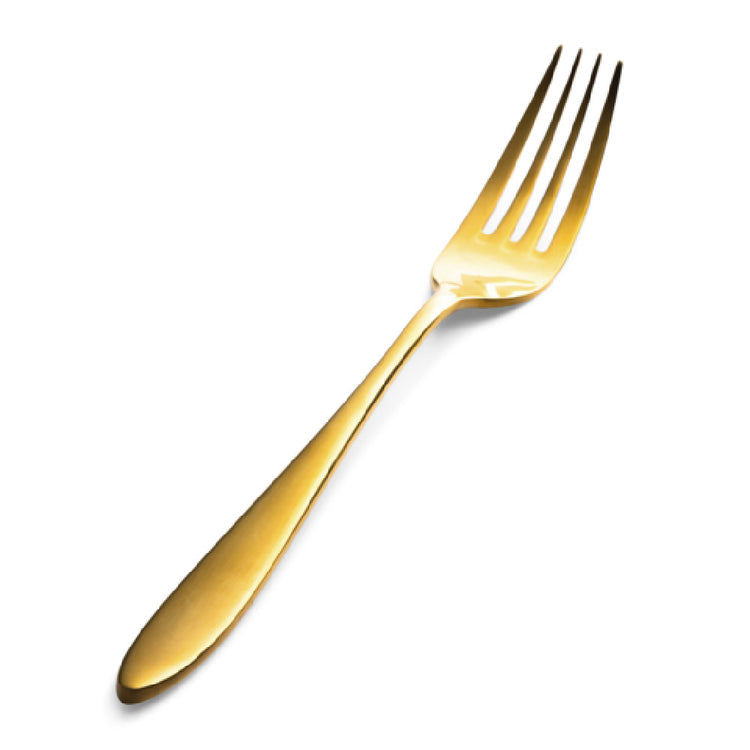 The Bon Chef S4405G Luce Euro Dinner Fork 8.23" 18/10 Stainless Steel is a distinguished piece of cutlery that blends precision engineering with elegant design. Crafted from high-quality 18/10 stainless steel, this fork offers excellent durability and resistance to corrosion, making it a reliable choice for both everyday use and special occasions. At 8.23 inches in length, it provides a comfortable balance and grip, enhancing the dining experience. The gold mirror finish not only adds a touch of sophistication but also ensures that the fork remains a striking centerpiece on any table setting. This product is ideally suited for upscale dining establishments, catering services, and hospitality environments that wish to impart an air of luxury and refinement to their patrons. By combining aesthetic appeal with functional excellence, the Bon Chef S4405G Luce Euro Dinner Fork offers a unique value proposition for those seeking to elevate their dining presentation while ensuring longevity and consistent performance in high-volume usage scenarios. Its European-inspired design complements a variety of tableware styles, making it a versatile addition to any cutlery collection. This fork is a testament to Bon Chef's commitment to quality and innovation in the culinary industry.