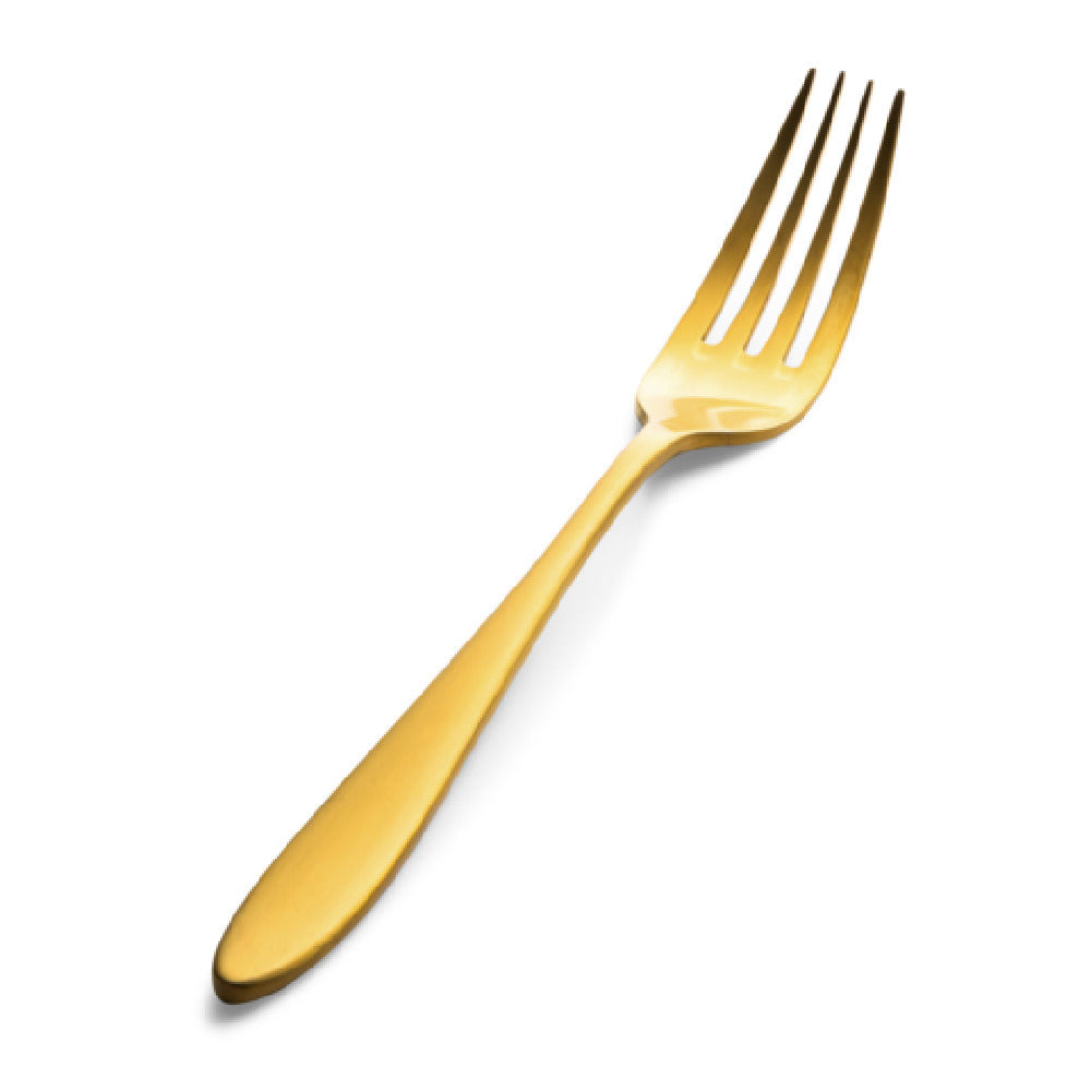 The Bon Chef S4405GM Luce Euro Dinner Fork - 8.23" 18/10 Stainless Steel is a distinguished piece of cutlery that seamlessly combines elegance and durability, making it an ideal choice for both fine dining establishments and home settings. Crafted from high-quality 18/10 stainless steel, this dinner fork promises exceptional resistance to corrosion and wear, ensuring long-term functionality and a polished appearance. Its 8.23-inch length offers a balanced and comfortable grip, enhancing the dining experience. The fork features a sophisticated gold matte finish, adding a touch of luxury and refinement to any table setting. This unique finish not only provides aesthetic appeal but also contributes to the fork's resilience against everyday use. The Bon Chef S4405GM is particularly suited for upscale restaurants, caterers, and banquet facilities that prioritize both style and substance in their service wares. Whether used in a commercial setting or for hosting dinner parties at home, the Luce Euro Dinner Fork stands out with its combination of contemporary design and superior quality, tailored for those who value both performance and elegance in their dining utensils.