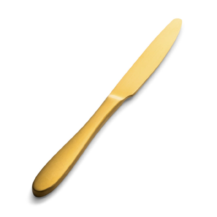Bon Chef S4410GM Luce Bread & Butter Knife 6.93" Solid Handle is a meticulously crafted utensil designed to enhance your dining experience with a blend of elegance and functionality. This knife is part of the Luce collection and features a solid handle, providing a comfortable and secure grip for precise slicing. Made from 18/0 stainless steel, it offers superior durability and resistance to corrosion, ensuring long-lasting performance in both professional and home settings. The knife is finished with a gold matte surface, adding a touch of sophistication and luxury to any table setting. Measuring exactly 6.93 inches, this knife is ideal for effortlessly spreading butter or slicing through crusty bread without compromising the delicate texture of the interior. The Bon Chef S4410GM is particularly suitable for establishments that prioritize aesthetic appeal alongside practical utility, such as high-end restaurants, cafes, and catering services. Its exquisite design and reliable construction make it a versatile addition to any cutlery collection, catering to diverse market segments within the food service industry. With its combination of stylish design and robust functionality, this bread and butter knife harmoniously balances form and function, making it a valuable tool for any culinary environment.