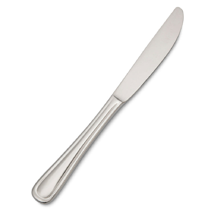 The Bon Chef S4617 Ravello Butter Knife 7.17" is a sophisticated utensil designed to enhance both aesthetic appeal and functionality in dining settings. This butter knife features a solid handle crafted from 13/0 stainless steel, a composition well-regarded for its corrosion resistance and magnetic properties, making it a practical choice for both commercial and home use. The knife's mirror finish provides a polished, elegant look that complements any table setting, adding a touch of refinement to everyday dining experiences. Measuring 7.17 inches in length, the Bon Chef S4617 is ergonomically designed to fit comfortably in the user's hand, ensuring ease of use during service. Its sturdy construction and refined aesthetic make it suitable for upscale restaurants, catering services, and hospitality venues that prioritize both style and durability in their tableware. The Bon Chef S4617 Ravello Butter Knife is a versatile tool that balances functionality with elegance, making it an essential addition to any cutlery collection seeking high-quality, polished stainless steel pieces.