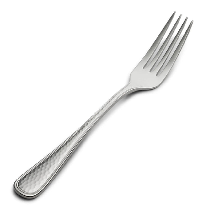 The Bon Chef S4706 Positano Euro Dinner Fork is an exquisite piece of cutlery measuring 8.1 inches in length, crafted from high-quality 18/10 stainless steel, known for its superior durability and resistance to corrosion. This dinner fork features a captivating hammered finish, adding a touch of elegance and sophistication to any dining experience. The 18/10 stainless steel composition, which includes 18% chromium and 10% nickel, provides enhanced luster and strength, making it an ideal choice for upscale restaurants, hotels, and catering services aiming to impress their clientele with premium flatware. The ergonomic design of the Euro-style dinner fork not only ensures a comfortable grip but also enhances the dining experience with its balanced weight and size, catering to both formal dining and everyday use. Bon Chef’s attention to quality and detail is evident in this product, making it suitable for those in the food service industry who prioritize aesthetic appeal and long-lasting performance in their cutlery selections. Whether used at a high-end event or as part of regular table settings, the Positano Euro Dinner Fork stands out with its distinct design and reliable functionality, elevating any table setting it graces.