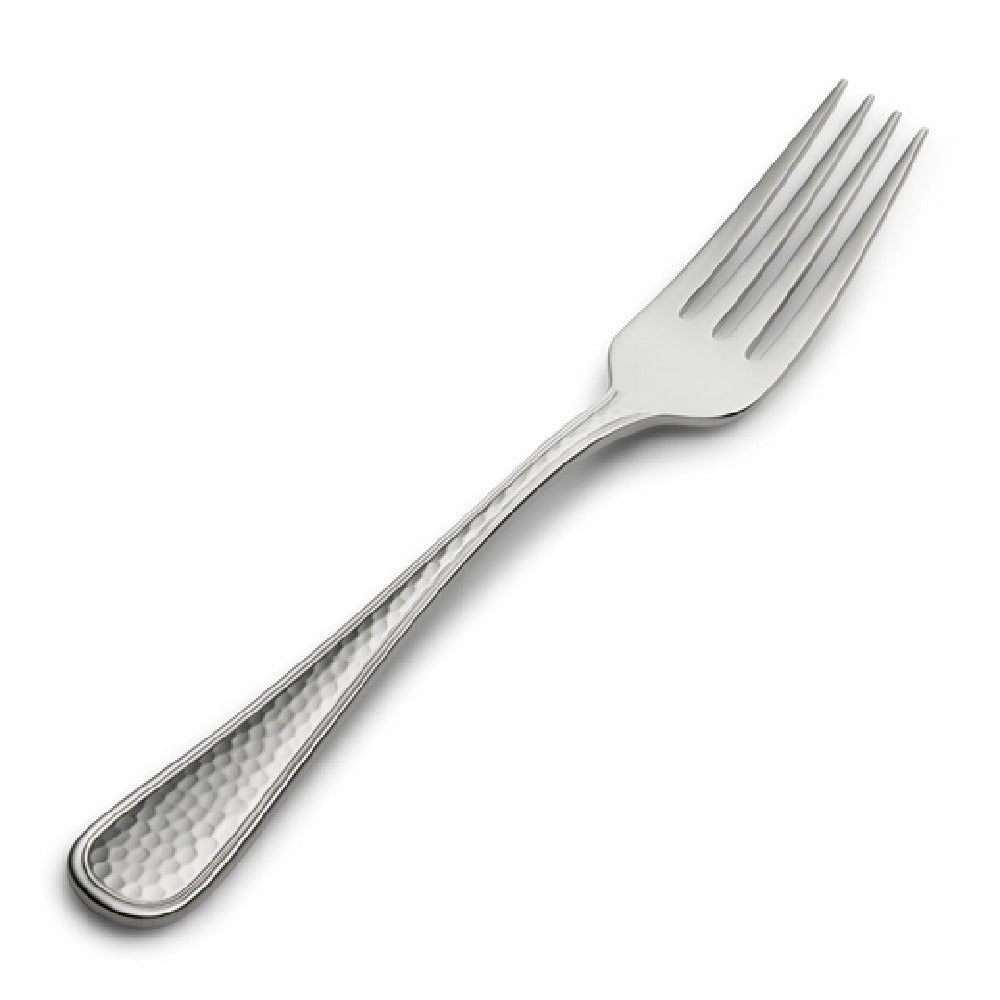 The Bon Chef S4707 Positano Salad Fork 7.3" 18-10 Stainless Steel is a sophisticated dining utensil crafted to meet the highest standards of quality and design. Measuring 7.3 inches in length, this fork is constructed from 18-10 stainless steel, signifying an alloy that contains 18% chromium and 10% nickel. This composition not only enhances its corrosion resistance but also ensures a brilliant, long-lasting shine, making it suitable for upscale dining environments. The hammered finish adds a unique tactile and visual texture, providing a touch of elegance that elevates any table setting. This fork is particularly well-suited for the hospitality industry, including hotels and fine dining restaurants, where presentation and durability are paramount. Its design balances aesthetic appeal with functional performance, making it an indispensable tool for chefs and restaurateurs who aim to deliver a refined dining experience. The Bon Chef S4707 Positano Salad Fork is versatile enough to complement both contemporary and traditional tableware, catering to diverse market segments within the food service industry. Its exceptional design and material make it a valuable addition to any culinary establishment looking to enhance their service with stylish and reliable flatware.