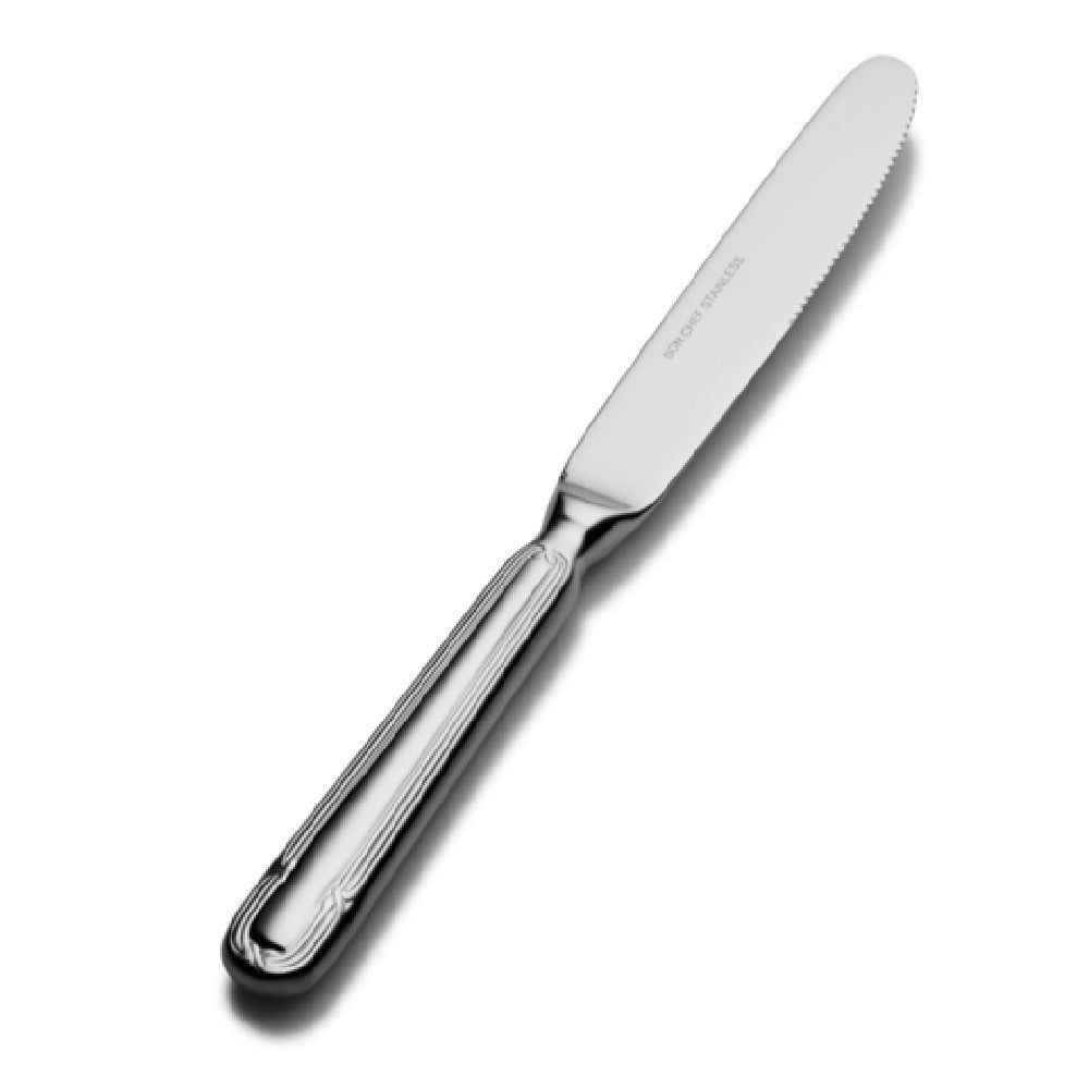 The Bon Chef S809 Florence Dinner Knife is a distinguished utensil that exemplifies precision and elegance, measuring 9.17 inches in length and equipped with a hollow handle to provide a balanced and comfortable grip. Crafted from 13/0 stainless steel, this dinner knife combines durability with a sophisticated aesthetic, making it an excellent choice for both casual dining and formal events. The use of 13/0 stainless steel not only ensures resistance to corrosion and wear but also provides a high-polish finish that enhances its visual appeal. This knife is particularly suited for establishments that prioritize both functionality and style, such as upscale restaurants, catering services, and luxury hotels. Its elegant design complements various table settings, while its sturdy construction ensures reliable performance for cutting through a variety of foods with ease. The Bon Chef S809 Florence Dinner Knife caters to different market segments, including hospitality and food service industries, where it meets the dual demands of aesthetic presentation and practical utility. This versatile dinner knife is a testament to Bon Chef's commitment to quality and excellence, offering a tool that is as functional as it is beautifully crafted, enhancing the dining experience at any table.