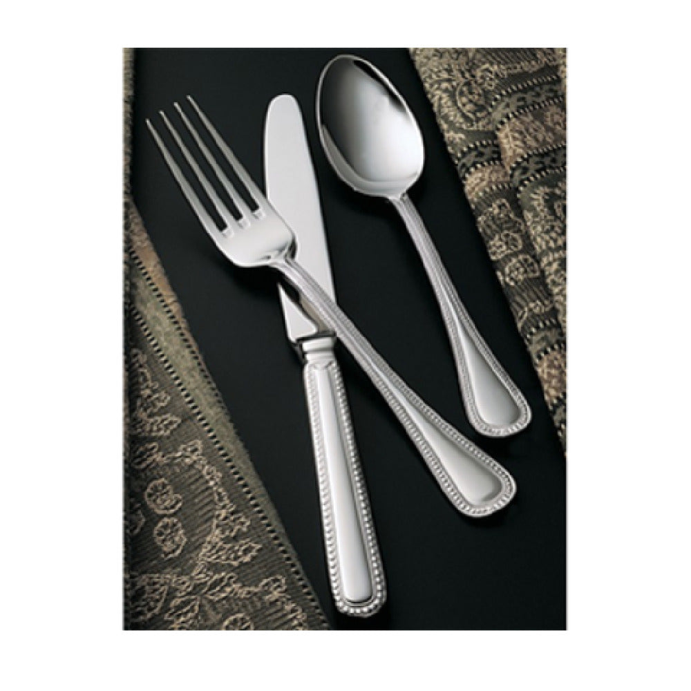 The Bon Chef SBS3312 Sombrero European Dinner Knife 9.60" Solid Handle is a sophisticated addition to any dining setting, meticulously crafted to meet the highest standards of both form and function. With its length of 9.60 inches, this knife is designed for an elegant European dining experience. The solid handle ensures a comfortable and balanced grip, making it ideal for both professional and home use. The brush finish imparts a refined aesthetic, enhancing its visual appeal while maintaining a timeless look. Made from 13/0 stainless steel, specifically bonsteel, this knife offers excellent durability and resistance to corrosion, ensuring longevity even with frequent use. This material choice not only contributes to its robust construction but also provides an economic and effective solution for establishments looking to maintain a high standard of tableware without compromising on quality. The Bon Chef SBS3312 knife is particularly well-suited for upscale restaurants, hotels, and catering services that wish to provide a premium dining experience. Its blend of aesthetic elegance and practical durability makes it a versatile tool for various dining environments, from intimate gatherings to large-scale events, where both style and substance are paramount.