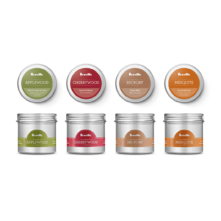 Breville Commercial, BSM600AWC0NUC1, Breville® The Smoking Gun® Woodchips, includes: (1) jar of Applewood chips, (1) jar of Hickory chips, (1) jar of Cherrywood chips & (1) jar of Mesquite chips
