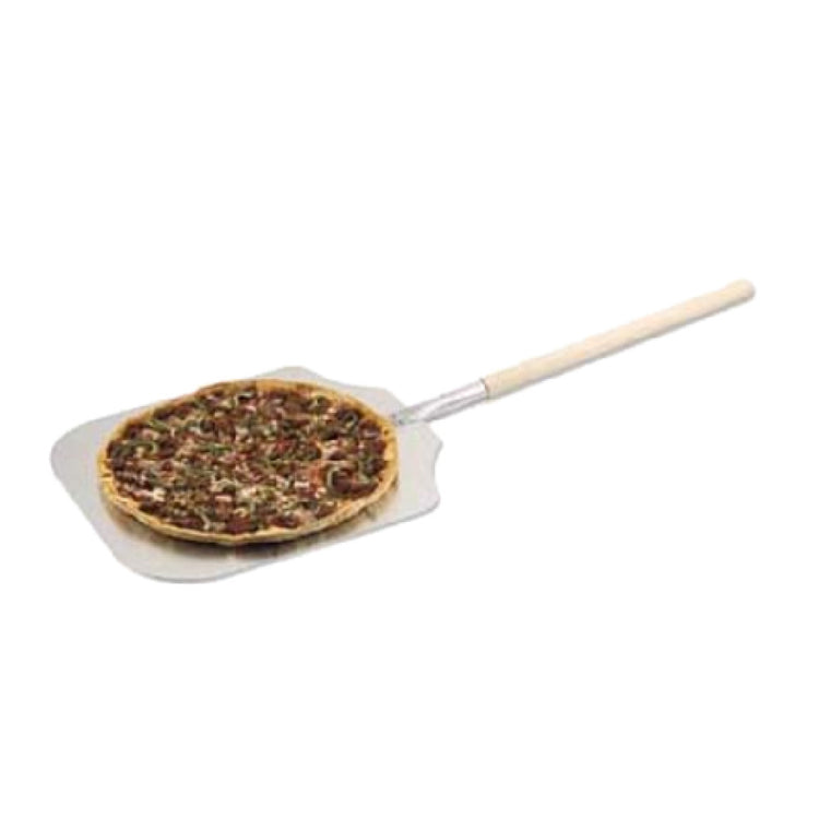 The Browne Foodservice 23506 Pizza Peel, measuring 35-1/2 inches in overall length, is an essential tool for professional kitchens and pizza enthusiasts alike. This pizza peel features a robust 14-inch by 14-inch blade, providing ample surface area for handling pizzas of various sizes with ease and precision. Crafted with a triple-riveted hardwood handle, it ensures a secure grip and enhances durability during high-frequency use. The aluminum blade offers lightweight maneuverability while maintaining the strength needed for reliable performance. This combination of materials makes the Browne Foodservice 23506 Pizza Peel a versatile choice for both commercial foodservice operations and home pizza making. Its design caters to the diverse requirements of different market segments within the food industry, emphasizing durability and functionality. Whether used in a bustling pizzeria or a home kitchen, this pizza peel is engineered to deliver consistent results, making it a valuable asset for any culinary setting. With its thoughtful construction and use of high-quality materials, the Browne Foodservice 23506 Pizza Peel stands out as a reliable and efficient tool for pizza preparation.